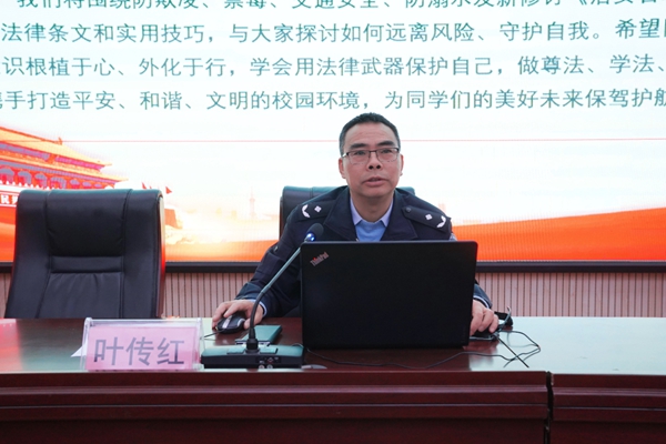安全无小事,责任大于天。叶传红希望同学们将所学知识牢记于心、付诸行动,远离校园欺凌、拒绝毒品、遵守交通规则、防范溺水风险,做尊法、学法、守法、用法的新时代青少年,同时成为法治精神的传播者,带动身边人营造“人人讲法治、事事守规则”的良好氛围。他指出,老师们作为引路人,要持续加强学生法治教育和安全教育,及时化解校园安全隐患。公安机关将坚守岗位、履职尽责,加大校园及周边安全管控,严厉打击侵害师生权益的违法犯罪,全力打造平安、和谐、文明的校园环境。