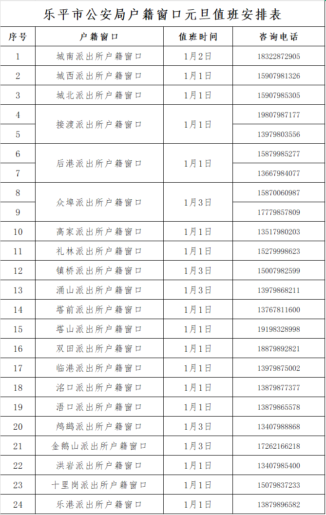 即将迎来元旦假期,但是,假期期间想要办理户籍业务,怎么办啊?别担心!为方便群众办理居民身份证以及相关户籍业务,乐平市公安局各派出所户籍窗口将错时为您服务!元旦假期“不打烊”哦!需要办理业务的群众,可以根据时间提前安排哦~