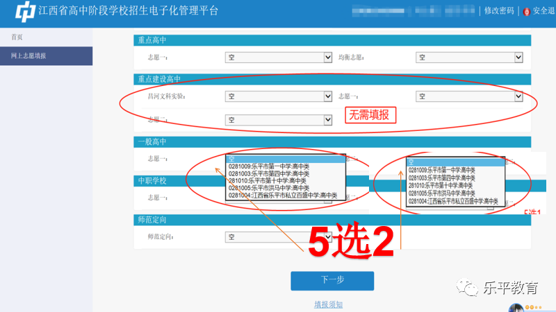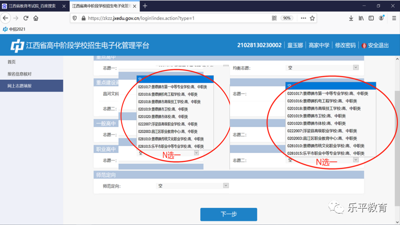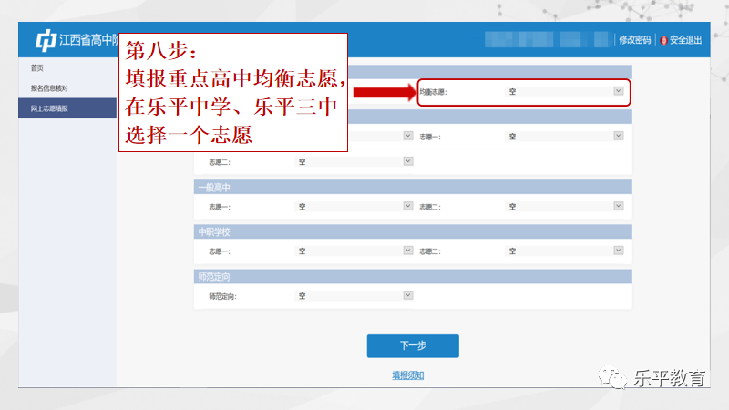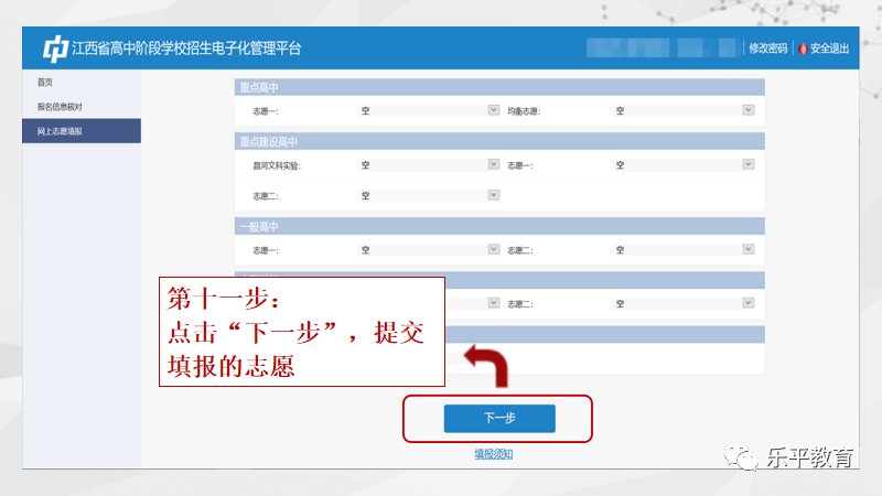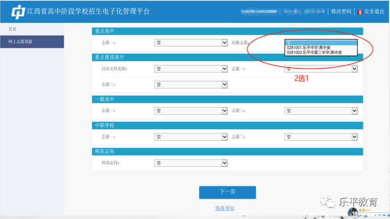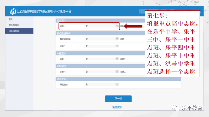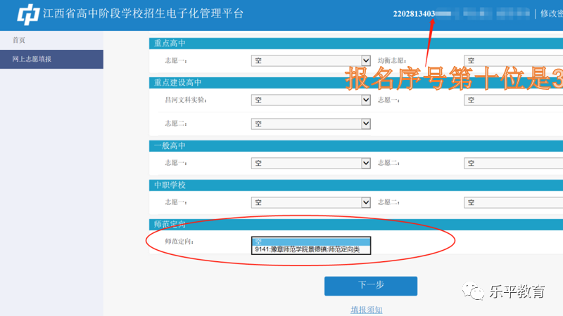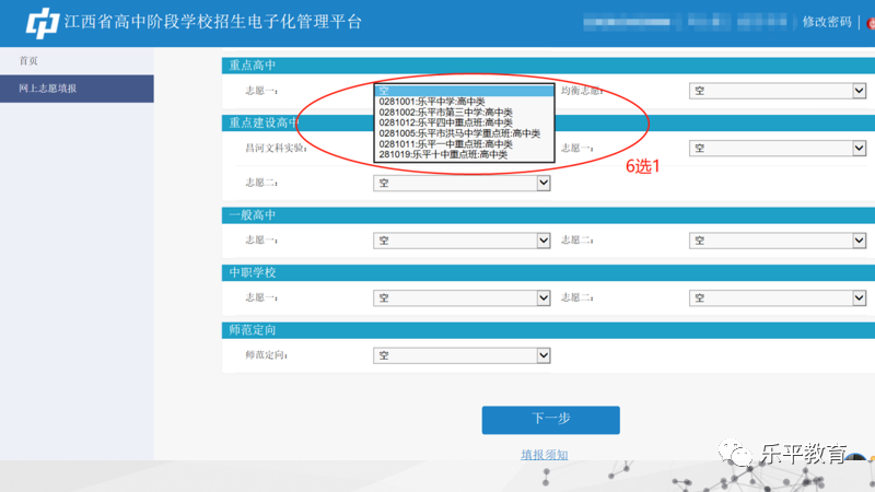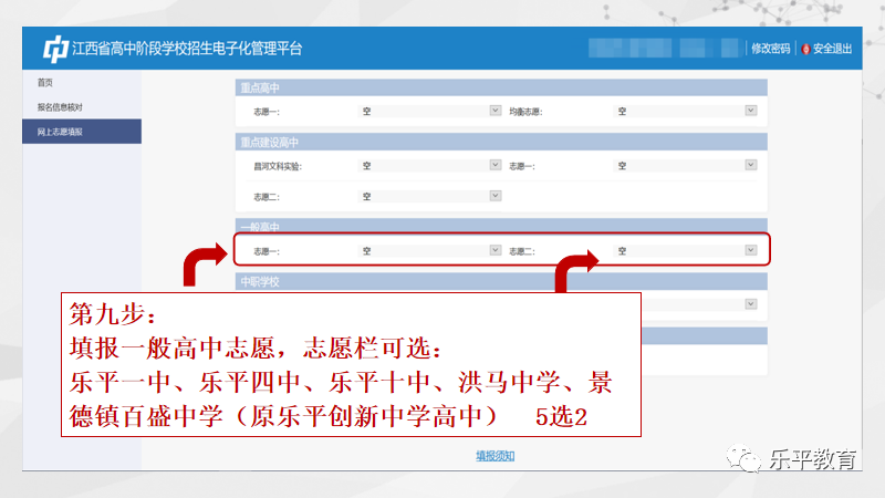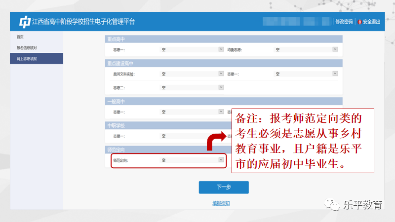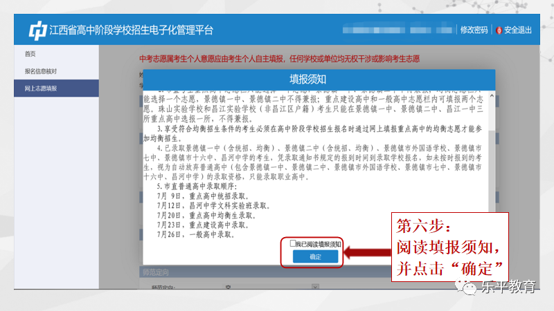 2023年乐平市考生初中学考志愿填报流程