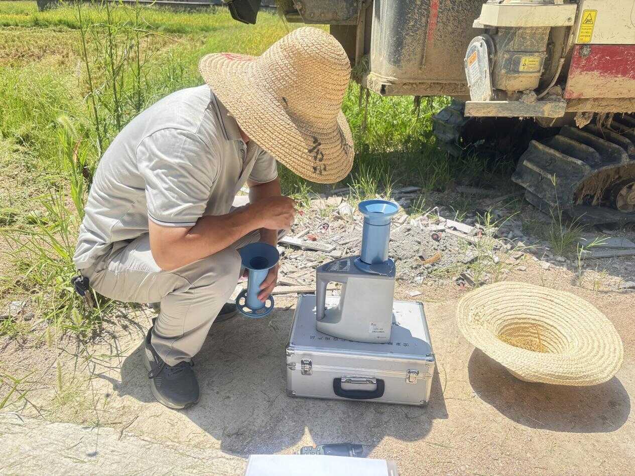 在确保高产的同时,“颗粒归仓”的减损目标同样被摆在突出位置。此次测产特别关注了机收环节的损失控制,技术人员深入田间,对每台参与作业的联合收割机进行精细调试,依据水稻品种、成熟度、干湿状况等动态调整割台高度、滚筒转速、风机风量等关键参数。