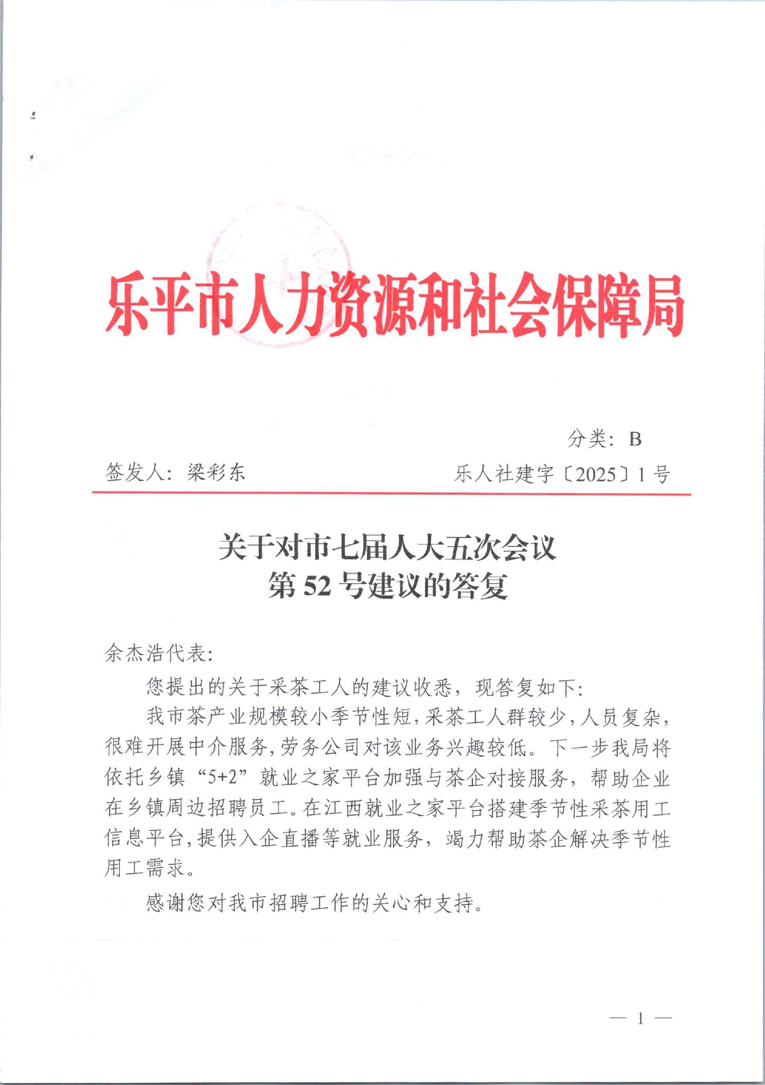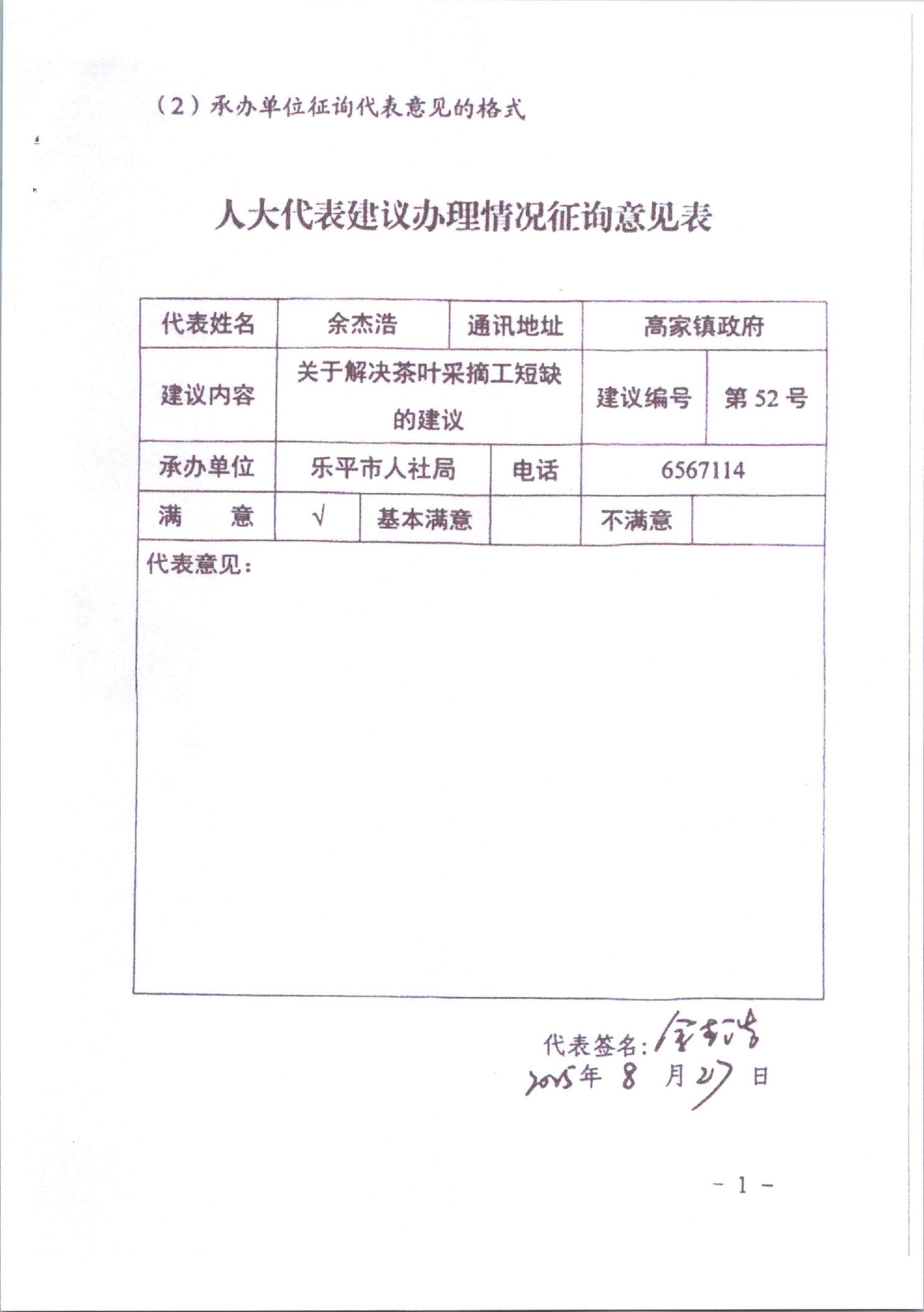 人大建议答复(第52号)