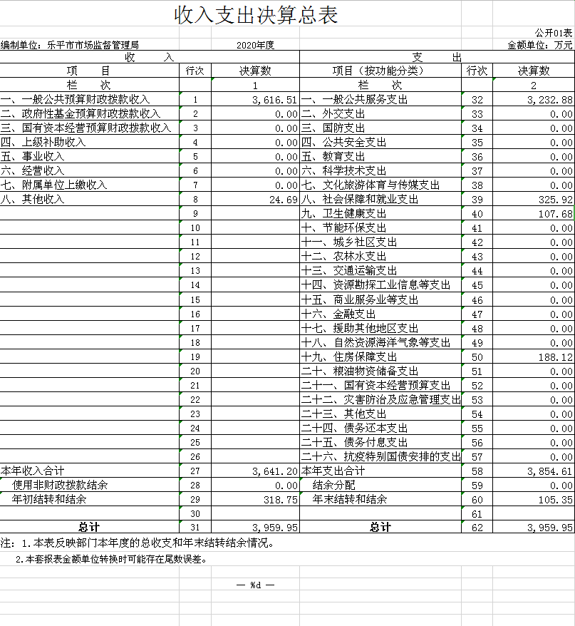 纳入本套部门决算汇编范围的单位共1个,包括:乐平市市场监督管理局本级。本部门2020年年末实有人数365人,其中在职人员238人,离休人员0人,退休人员 127人;年末其他人员20人;年末学生人数0人。