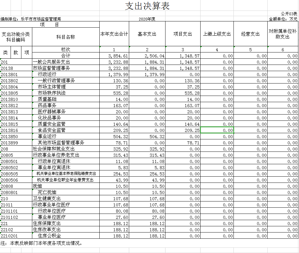 1、一般公共服务(类)市场监督管理事务(款)行政运行(项):反映行政单位(包括实行公务员管理的事业单位)的基本支出。
