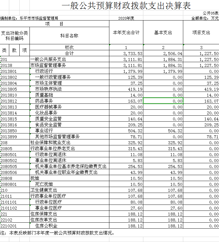 2、一般公共服务(类)市场监督管理事务(款)一般行政管理事务(项):反映行政单位(包括实行公务员管理的事业单位)未单独设置项级科目的其他项目支出。