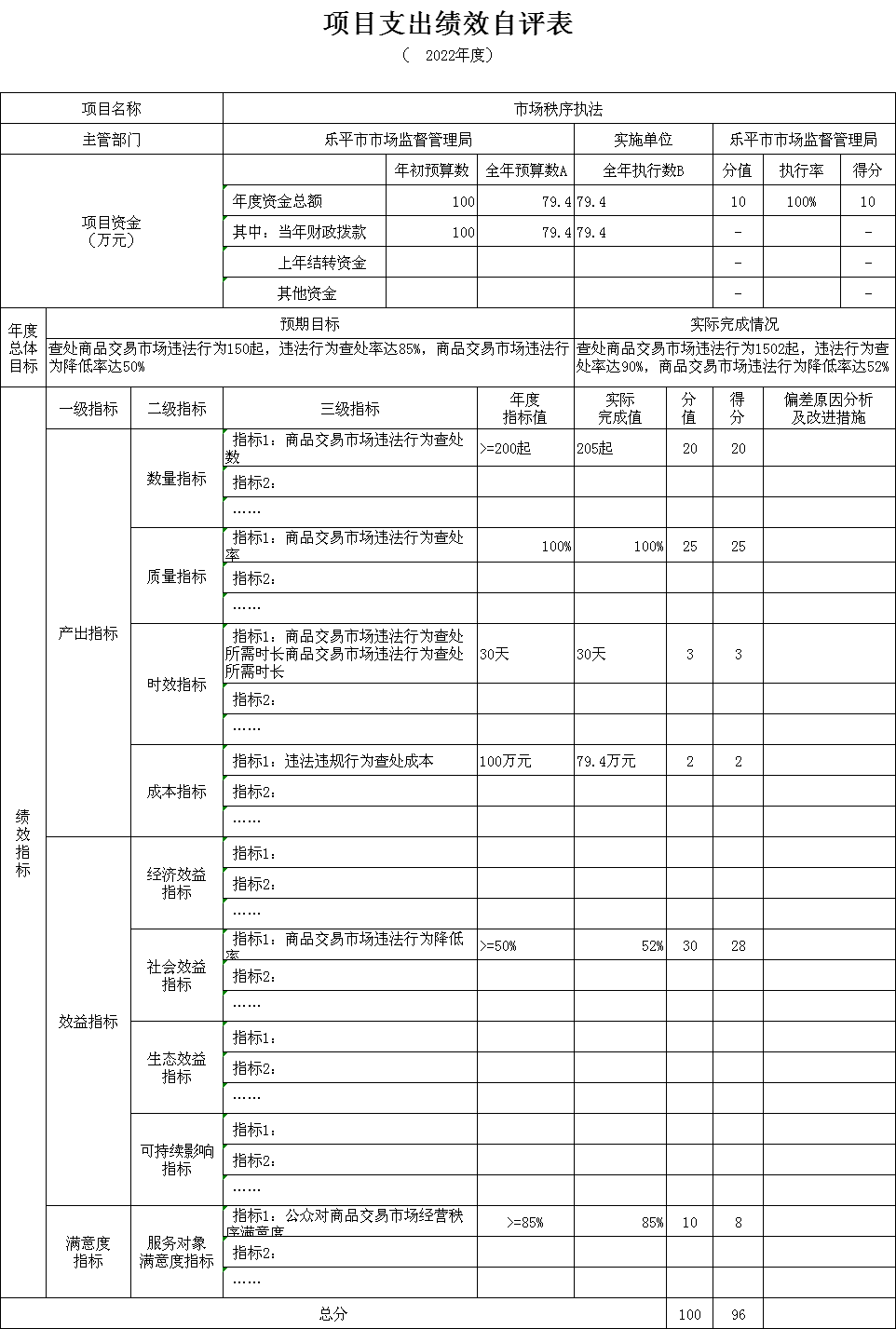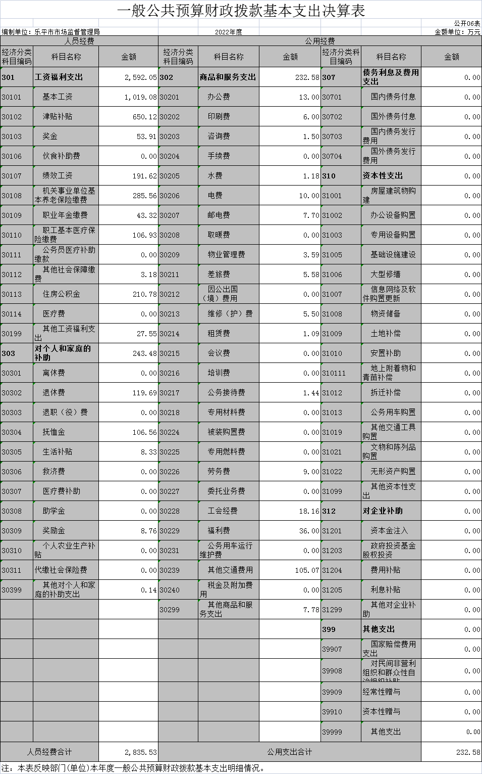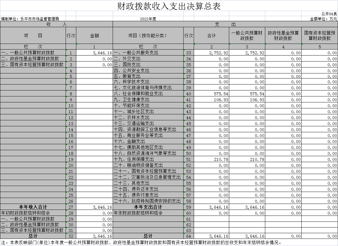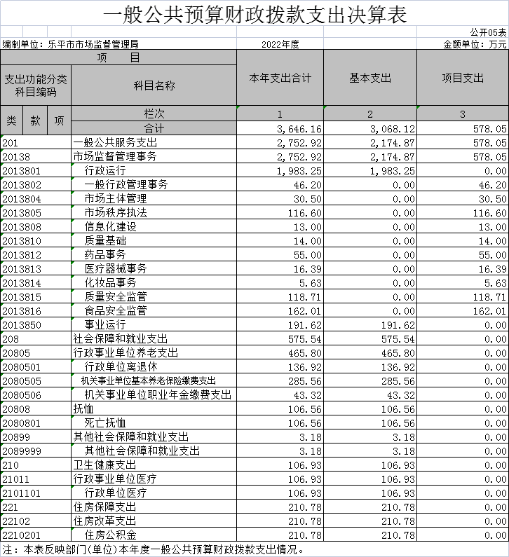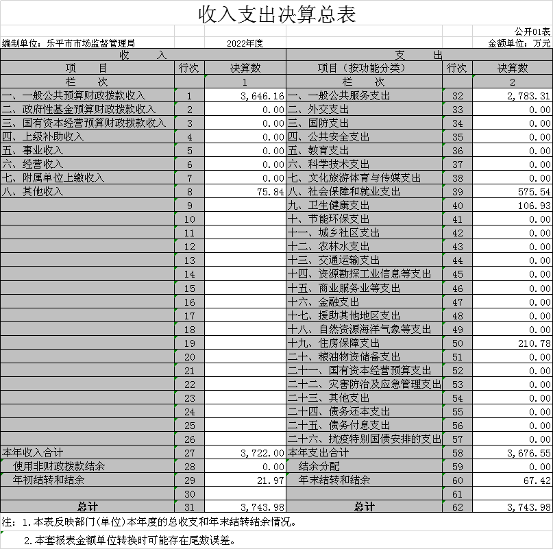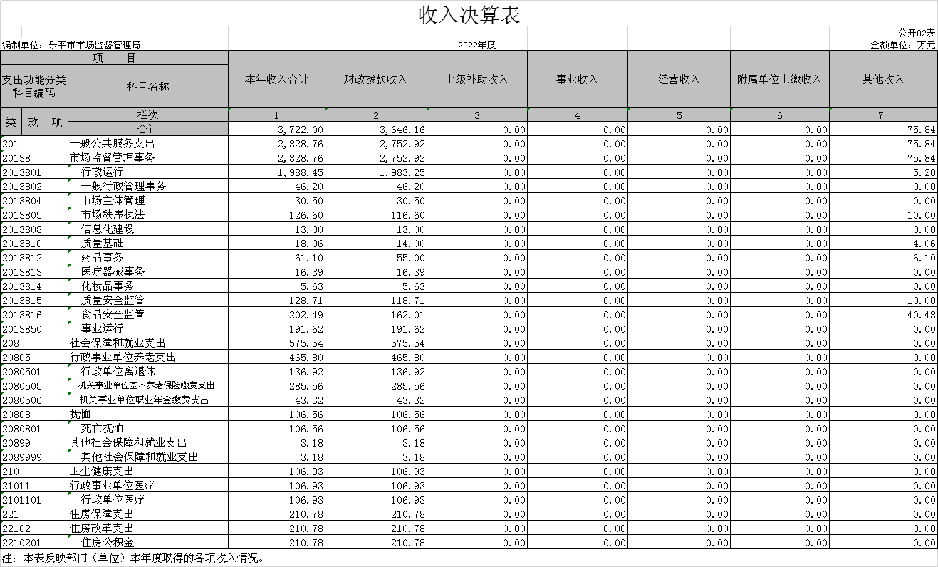 乐平市市场监督管理局2022年度部门决算