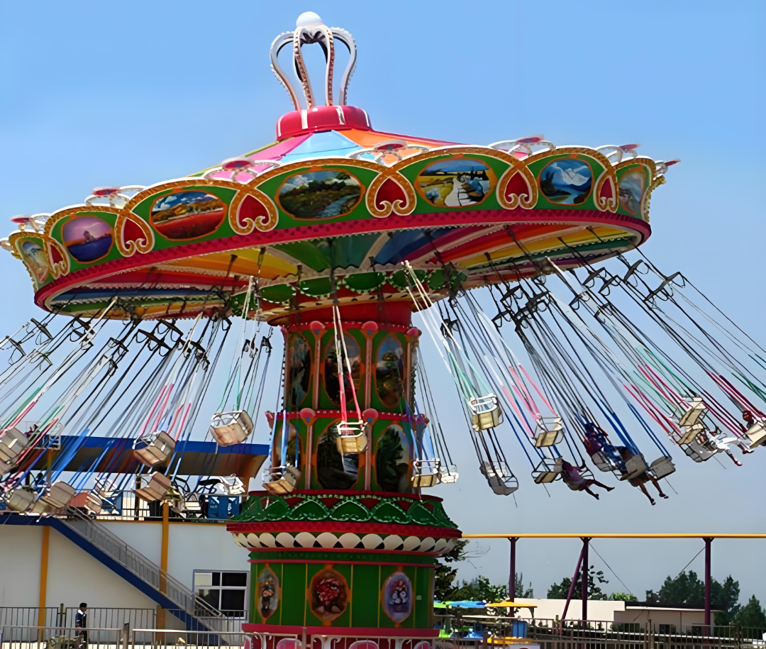 大型游乐设施种类繁多,包含滑行车类、观览车类、飞行塔类、架空游览车类、陀螺类、转马类、自控飞机类、赛车类、小火车类、碰碰车类、滑道类、水上游乐设施、无动力游乐设施。