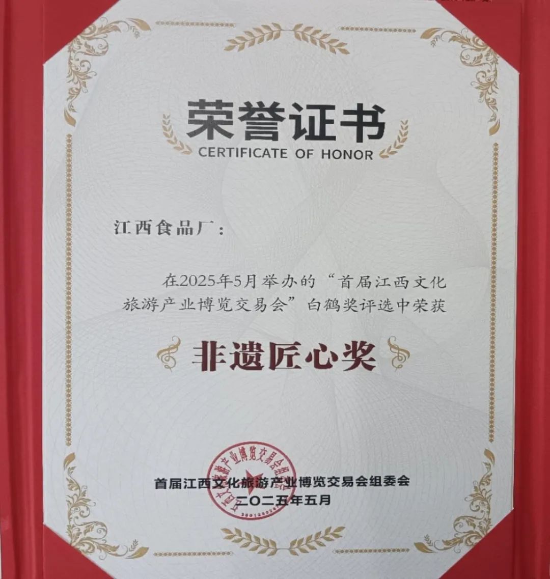5月3日,为期4天的首届江西文化旅游产业博览交易会在南昌绿地国际会展中心圆满收官。展会期间,来自国内外数百家企业争奇斗艳,特色活动精彩纷呈。在这场文旅盛宴中,江西食品厂凭借其对传统食品制作技艺的坚守与创新,在激烈的竞争中脱颖而出,荣获“非遗匠心奖”,为乐平食品行业再添一抹亮丽的色彩。