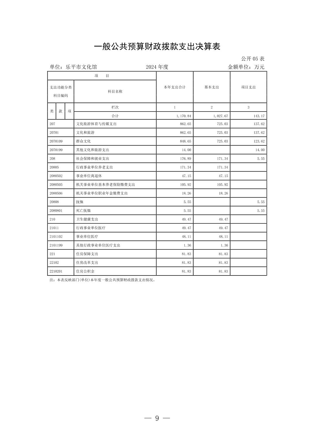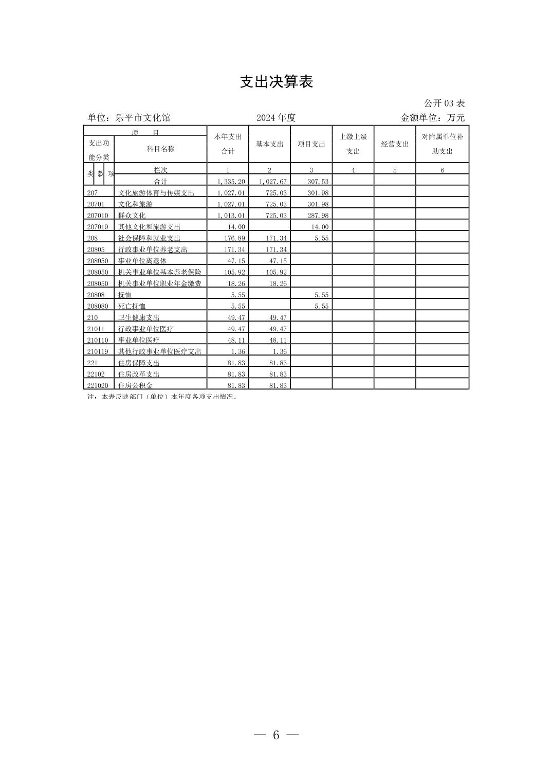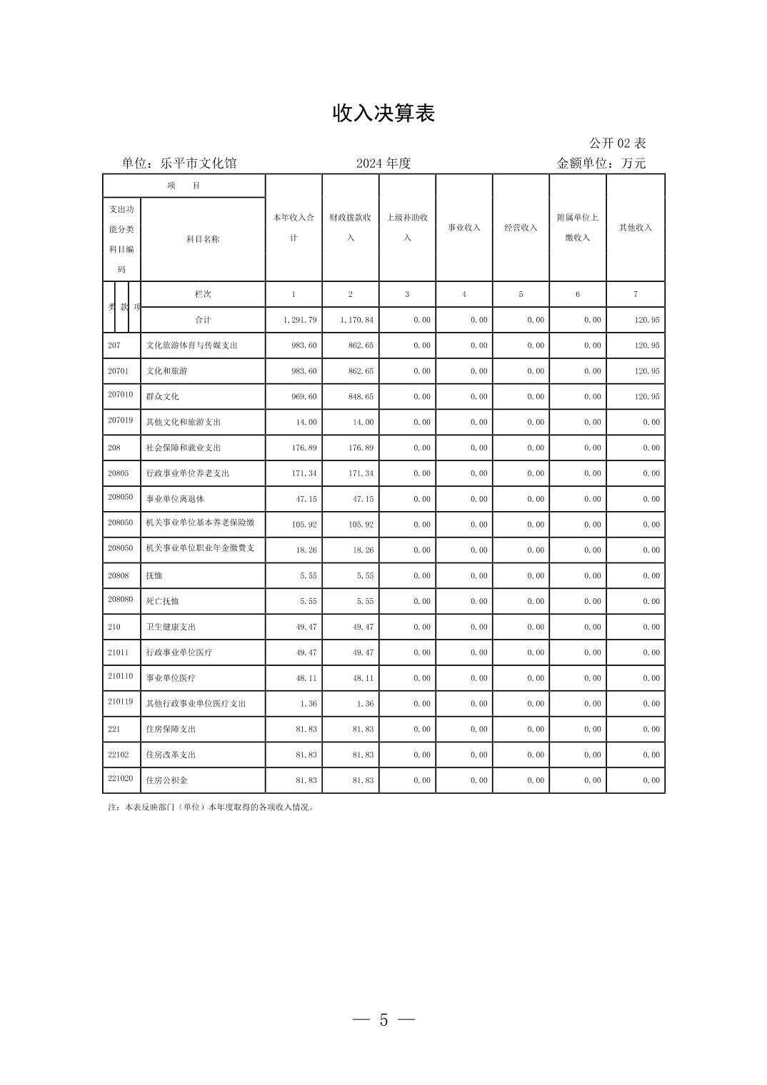 乐平市文化馆2024年单位决算