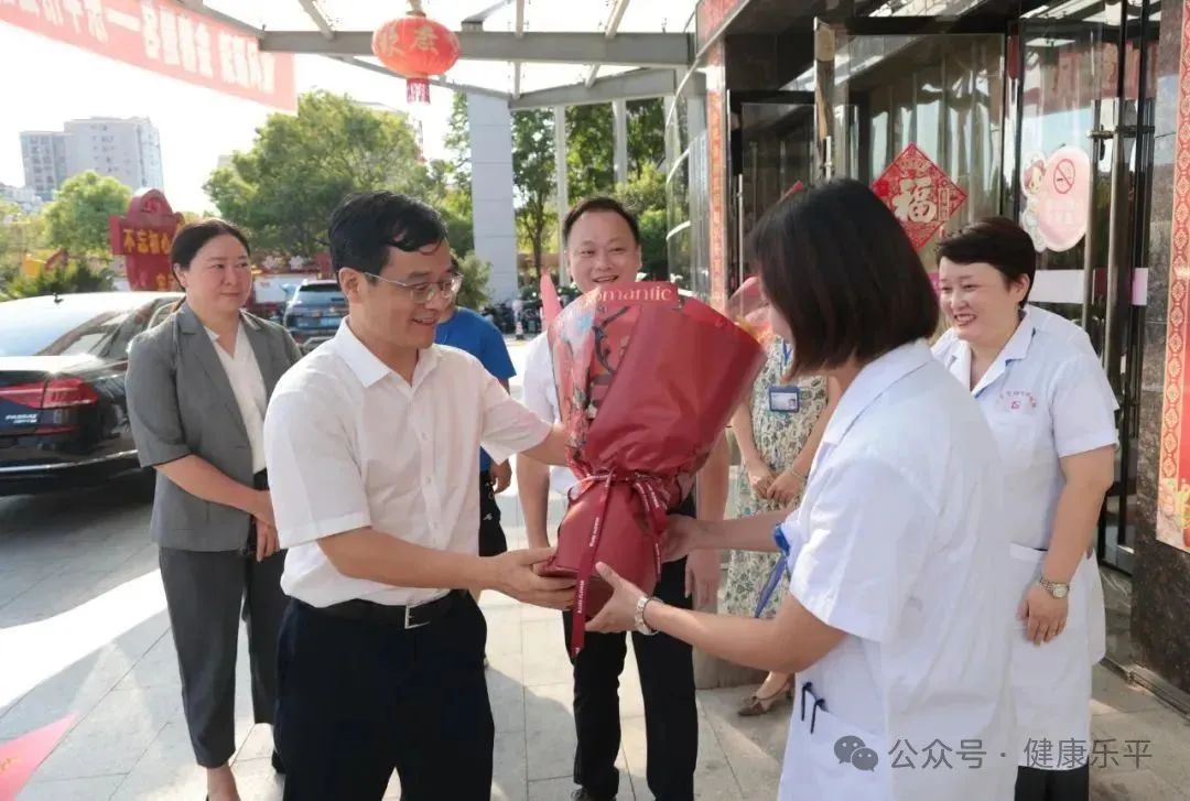 8月18日上午,市委副书记、市长吴艳先后来到市中医医院、洎阳卫生院和乐平友乐医院,走访慰问一线医务工作者,向他们致以节日的问候和祝福。副市长朱柳英一同走访。