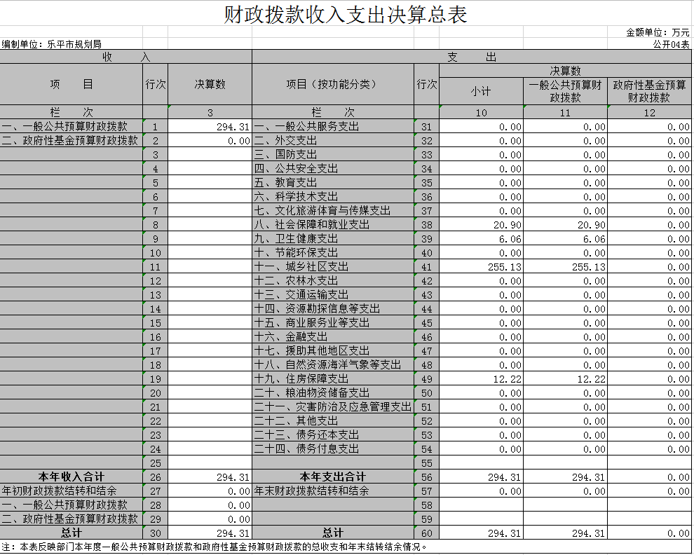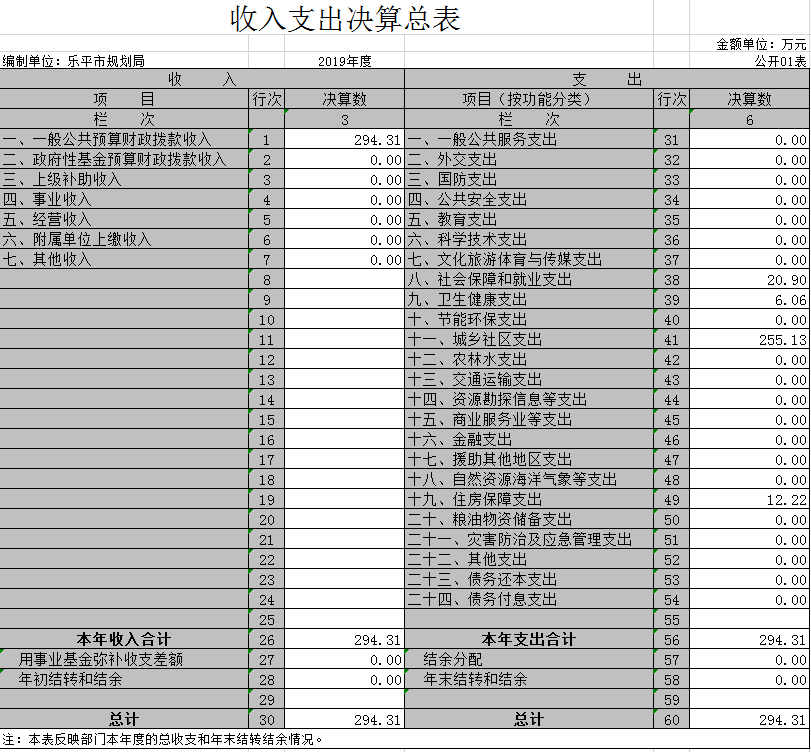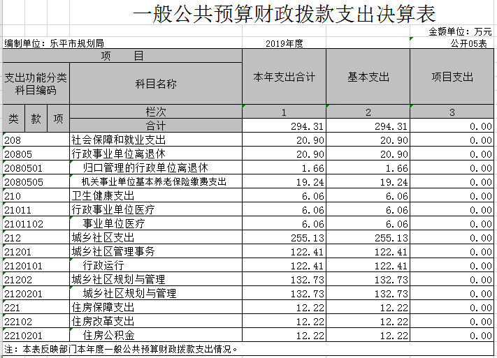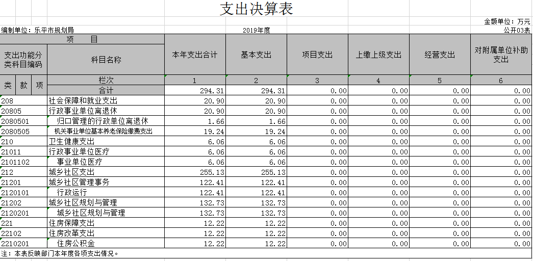 本部门2019年度支出总计294.31万元,较2018年减增加28.32万元,增加10.65%,主要原因是人员增资以及规划设计费增加,无年末结转和结余。