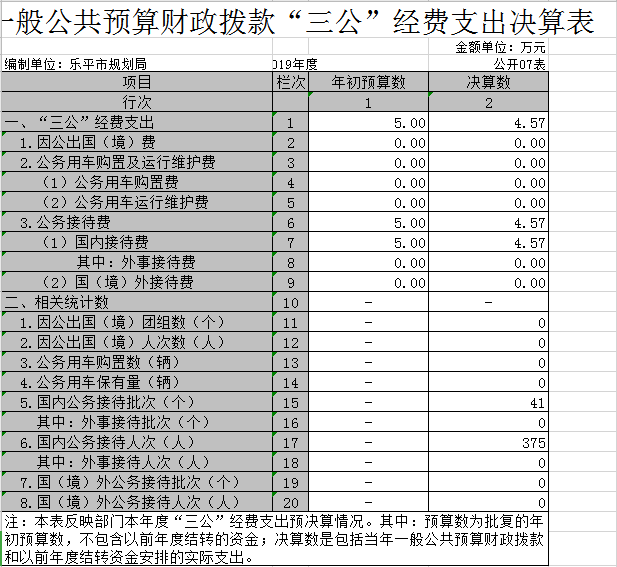 (二)公务接待费支出年初预算数为5万元,决算数为4.57万元,完成年初预算的91.4%,决算数较2018年增加1.62万元,增加54.91%。决算数较年初预算数增加的主要原因是增加了公务接待次数。
