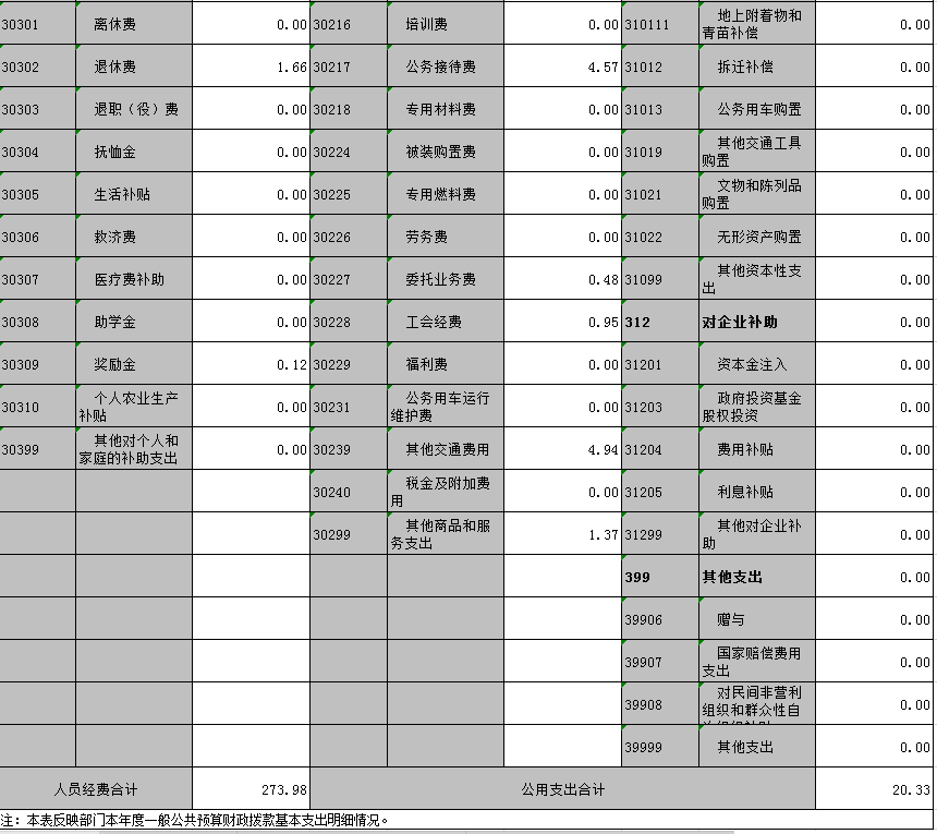 本部门2019年度机关运行经费支出20.33万元(与部门决算中行政单位和参照公务员法管理事业单位一般公共预算财政拨款基本支出中公用经费之和保持一致),较年初预算数增加0万元,增长0%。