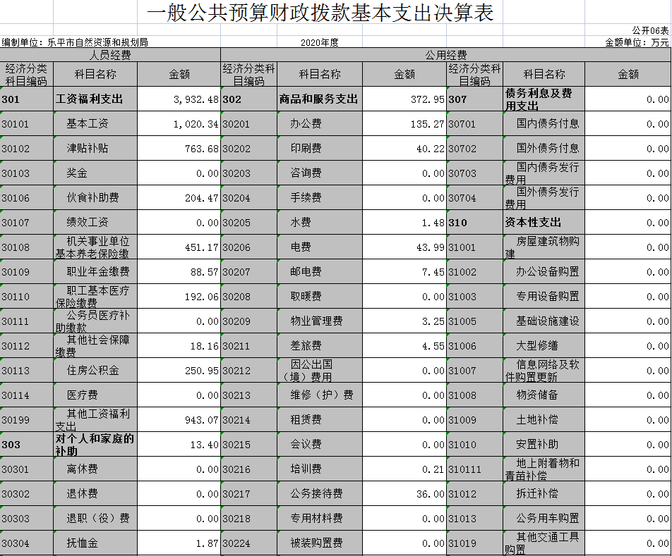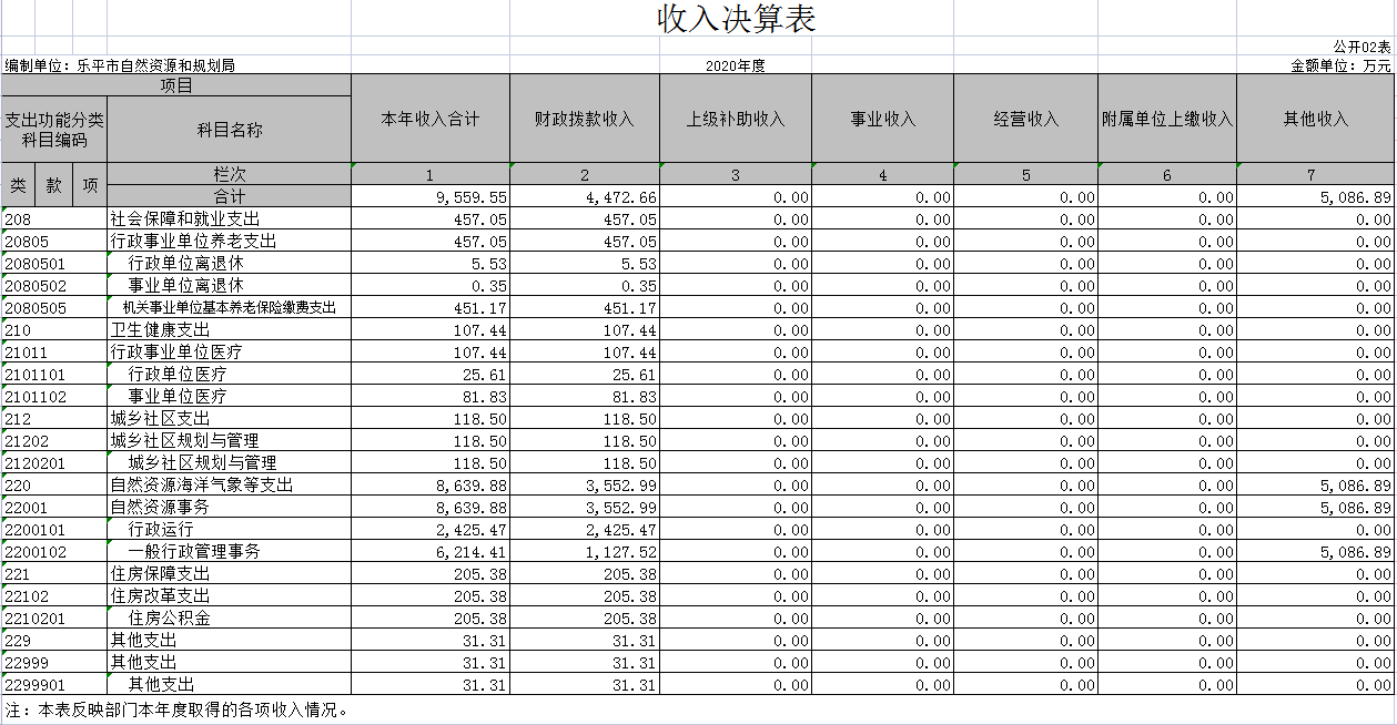 第二部分 2020年度部门决算表