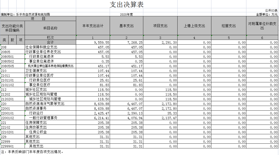 本年支出的具体构成为:基本支出7268.25万元,占76.03%;项目支出2291.3万元,占23.97%。