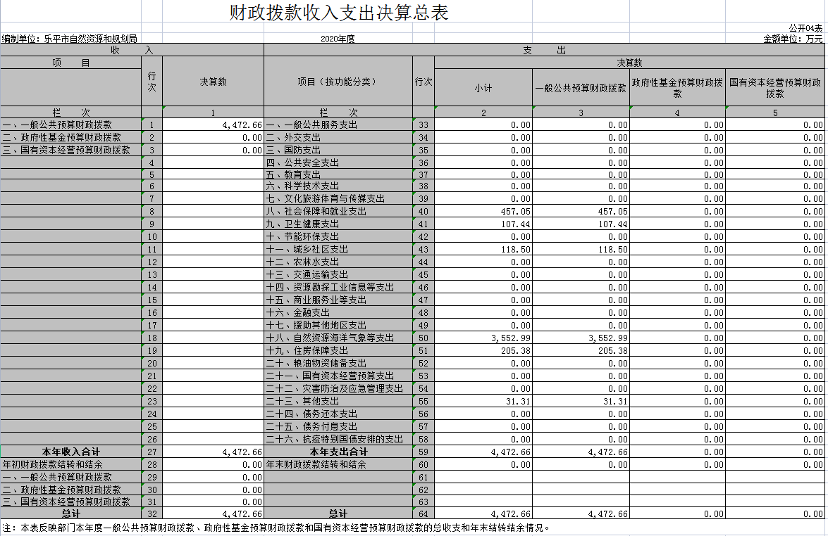 四、财政拨款收入支出决算总表