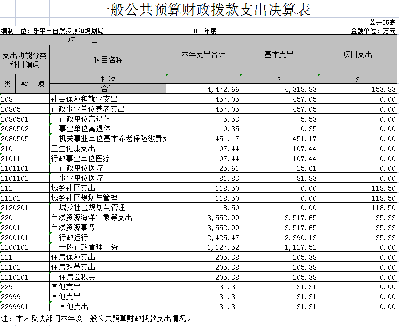 五、一般公共预算财政拨款支出决算表