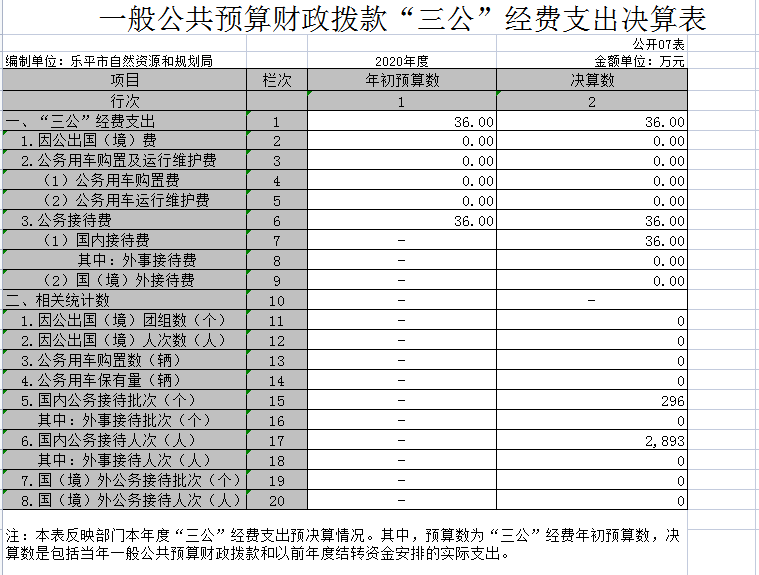 2020年“三公”经费支出为36万元,上年度“三公”经费支出41.19万元,本年度比上年度下降5.19万元,下降比例为12.6%,下降原因为公车改革,本年度无公车运行维护费用。本年度“三公”经费年初预算数36万元,决算数36万元,均为公务接待费。