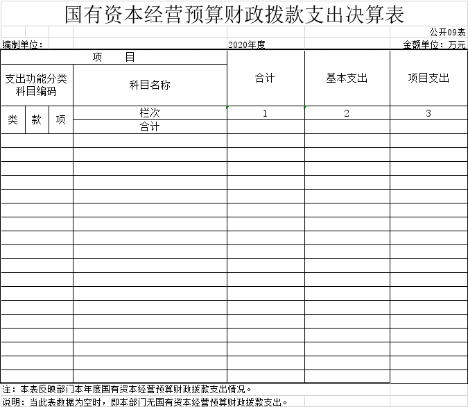 国有资本经营预算财政拨款支出决算表