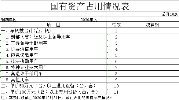 十、国有资产占用情况表