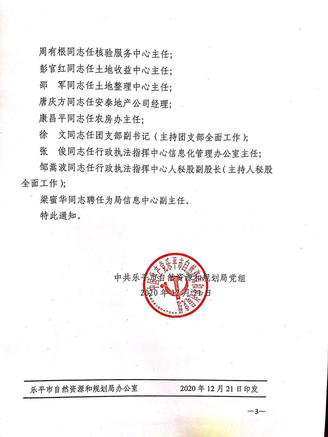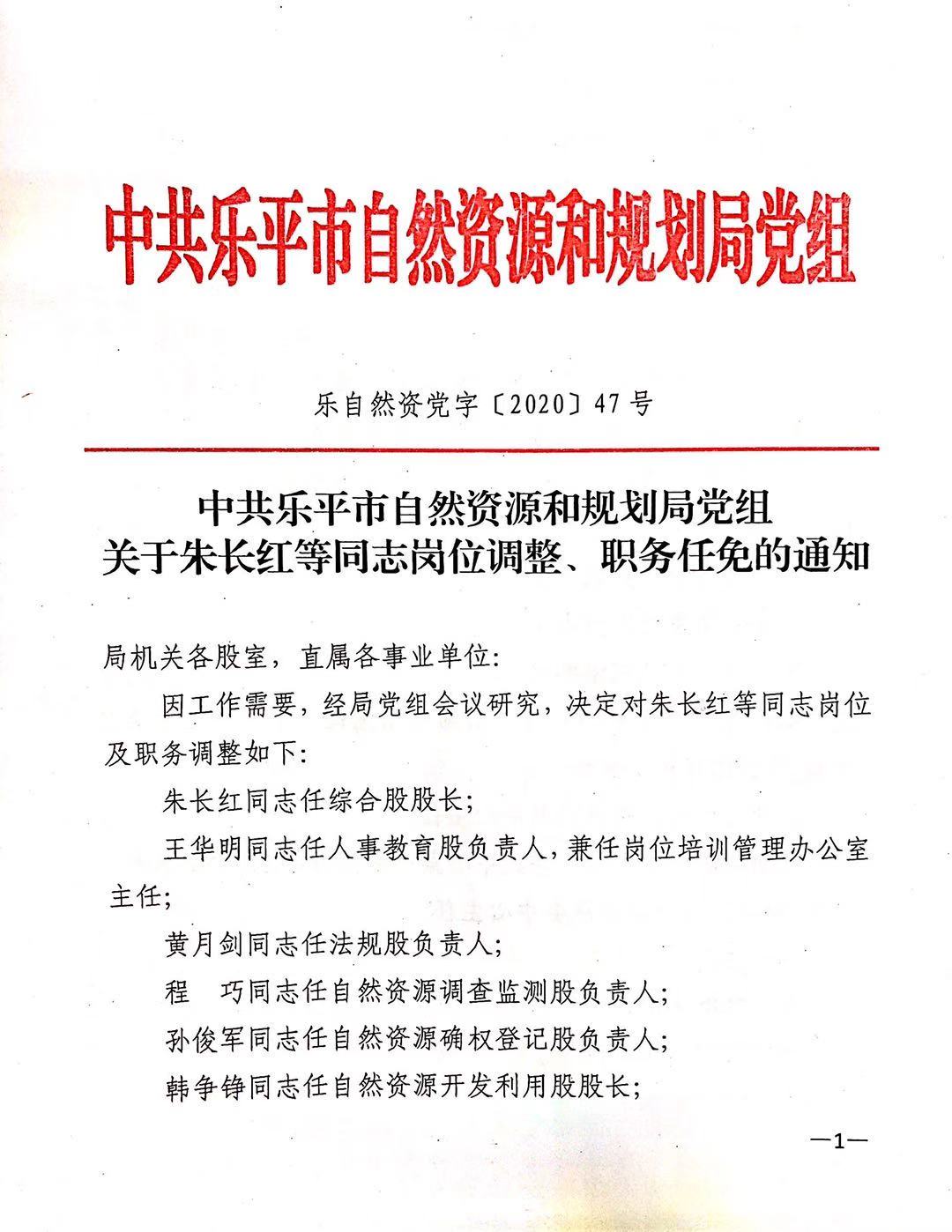 中共乐平市自然资源和规划局党组关于朱长红等同志岗位调整、职务任免的通知