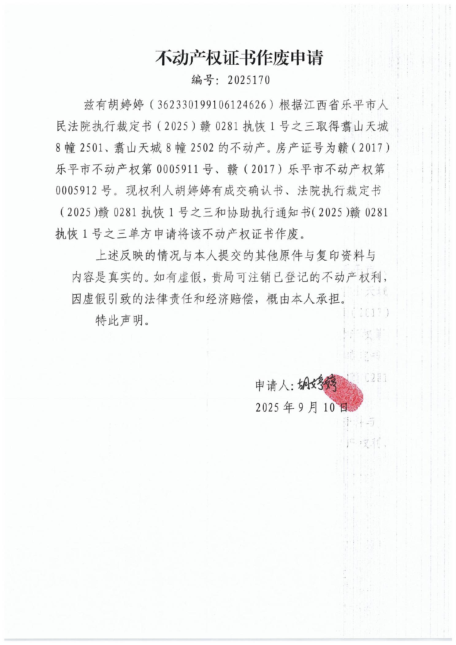 不动产权证书作废申请(胡婷婷)(1)