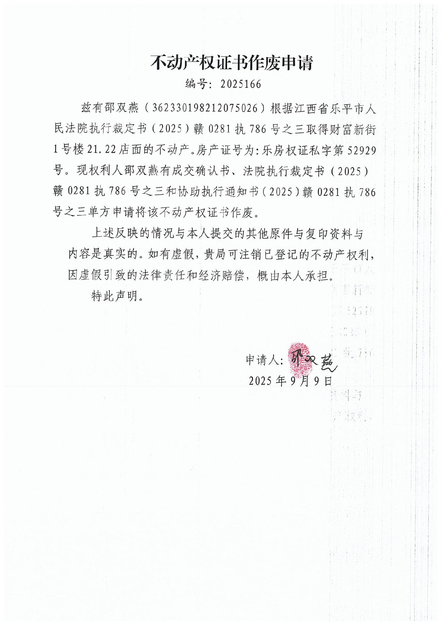 不动产权证书作废申请(邵双燕)