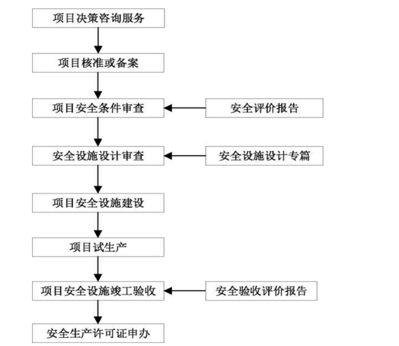 (3) 在安全条件审查环节,建设单位委托具有相应资质条件的安全评价机构进行安全评价,出具安全评价报告;建设单位向应急管理部门申请项目审查;应急管理部门出具安全条件审查意见书。