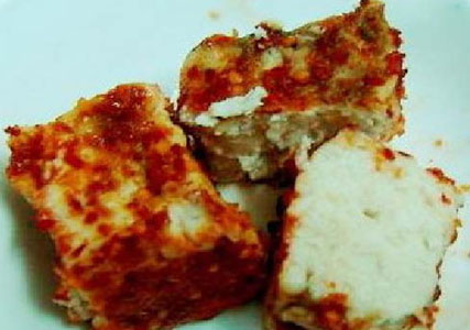 高家霉豆腐制作方法是将豆腐切成长2厘米、宽2厘米、厚1.5里米的小块,先放在盖帘上控水一天,再把豆腐块用保鲜膜蒙上待霉化生菌,等其发霉长满红菌后,准备红辣椒粉、盐、味精等调料拌均匀,将生了红菌的豆腐块稍微清洁一下,在拌好的辣椒里面6个面沾匀就行,放在瓶里码放整齐,往瓶里到点白酒杀菌,封装起来放置一段时间,1个月以后就成了风味独特的霉豆腐。霉化时间长短不同则霉豆腐软硬不同,口味也有所不同,这个就看个人喜好了。时间长一点会更好吃。要注意的是制作过程不要沾油、水,否则易坏,再则开封后要往瓶里倒色拉油或香油与空气隔绝。高家霉豆腐既是下稀饭的好菜,又是嚼馒头、吃面条等的风味小菜。