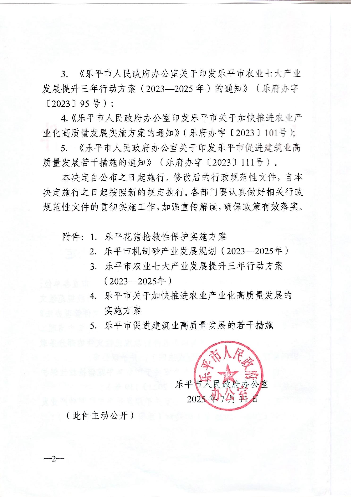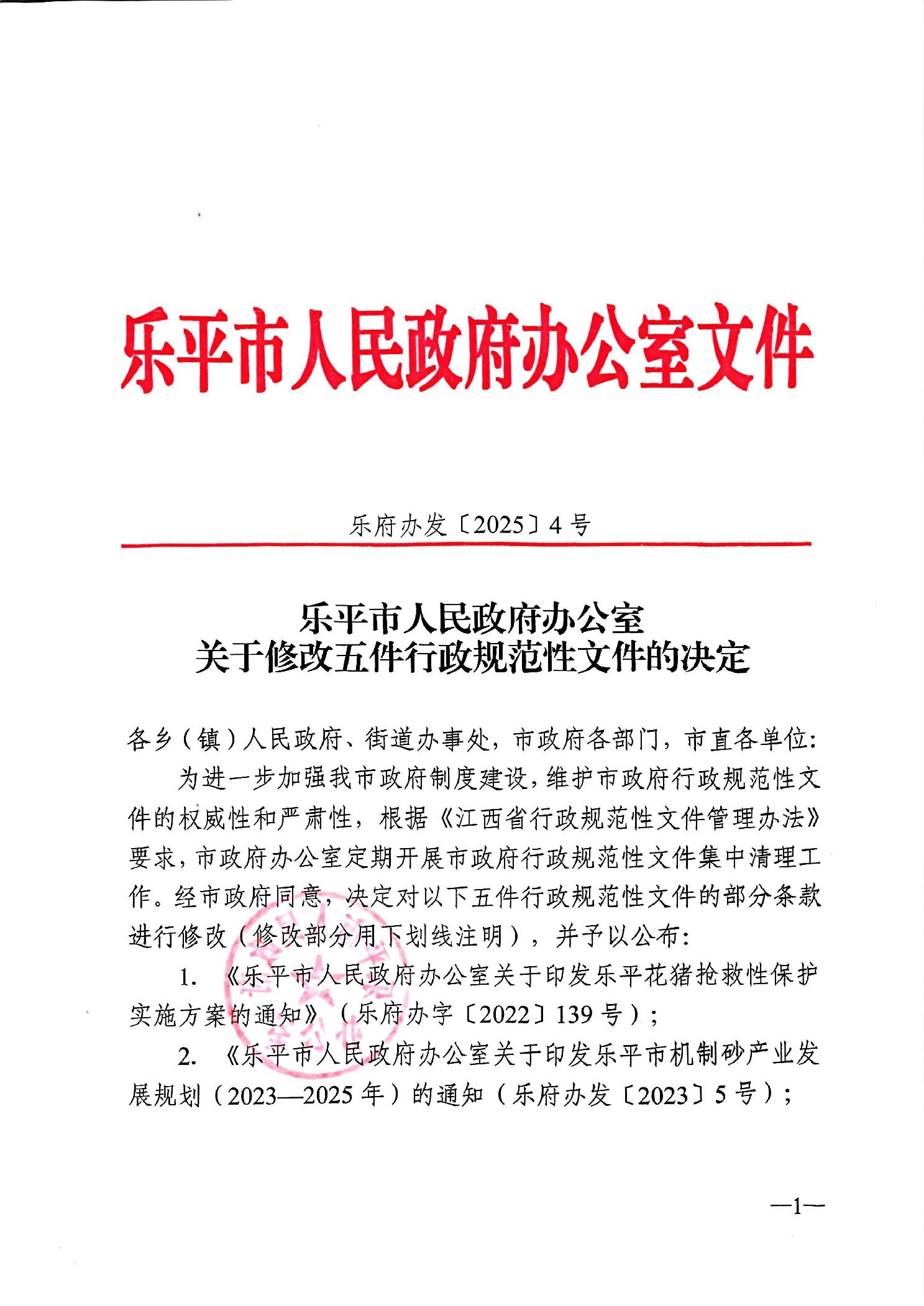 乐平市人民政府办公室关于修改五件行政规范性文件的决定