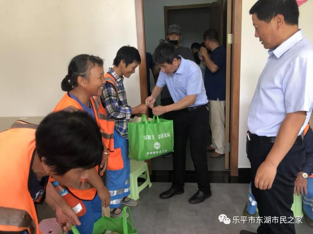 8月1日上午,景德镇市总工会常务副主席伍恒明等一行人来到东湖市民之家开展“情系职工,夏送清凉”活动,为奋斗在一线的职工送去了降温消暑物品,送上了对他们的关爱和清凉。乐平市人大常委会副主任、市总工会主席张北海、洎阳街道党工委书记朱瑞龙、副书记汪雪芳等先后陪同。