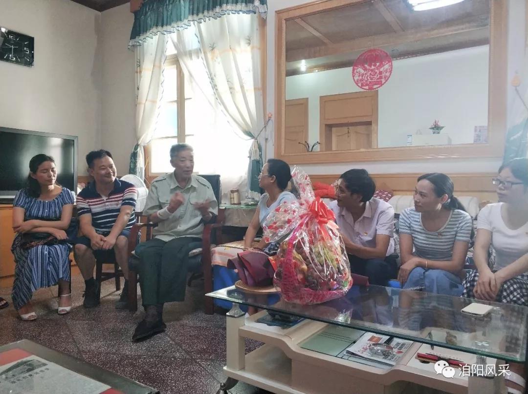 8月3日上午,洎阳街道党工委副书记汪雪芳及机关第一党支部书记何伟带领支部全体党员,怀着对军人的崇高敬意和关切之情看望了居住在扶摇社区的抗战老兵、全国拥军模范张文涛。支部党员们认真聆听了张文涛讲述的抗战故事,为我军抗战不怕牺牲,英勇抗战的精神感到无比崇敬。大家都衷心感谢广大军人在保卫国家、建设国家中做出的贡献,并祝愿张文涛生活幸福,阖家欢乐。