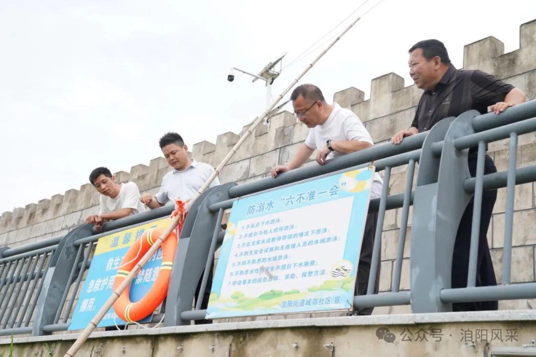暑期将近,气温逐渐升高,溺水事故进入高发期。为切实保障辖区居民尤其是青少年的生命安全,5月20日,洎阳街道党工委书记杨乐军带队深入辖区内有水域的社区,开展防溺水工作专项督查,重点排查水域边上防溺水“四个一”设施配备情况。街道党工委委员、人武部部长彭志方陪同。