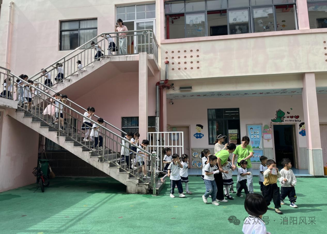 随着演练开始信号的发出 ,警报声在校园响起。社区工作人员和老师快速到岗,组织学生按照预订的疏散路线有序撤离。同学们沿着楼梯弯腰、下蹲、捂鼻有序下楼,到达指定区域。整个过程紧张有序、有条不紊。