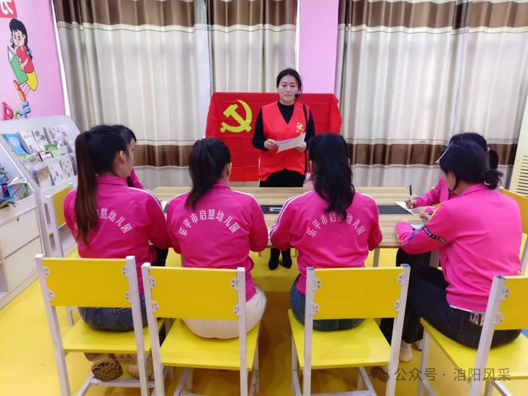 随后,东湖社区党支部书记余晓英还为幼儿园教师生动地讲述了建党背景、党的诞生、党在各个历史时期经历的重大事件、所取得的伟大胜利,以及英烈模范事迹等。尤其是讲述了党的二十大以来经济社会发展所取得的伟大成就、科技发展及抗疫成果、全面建成小康社会等彪炳史册的功绩,从而使大家更加坚信党的信念,听党话,永远跟党走。
