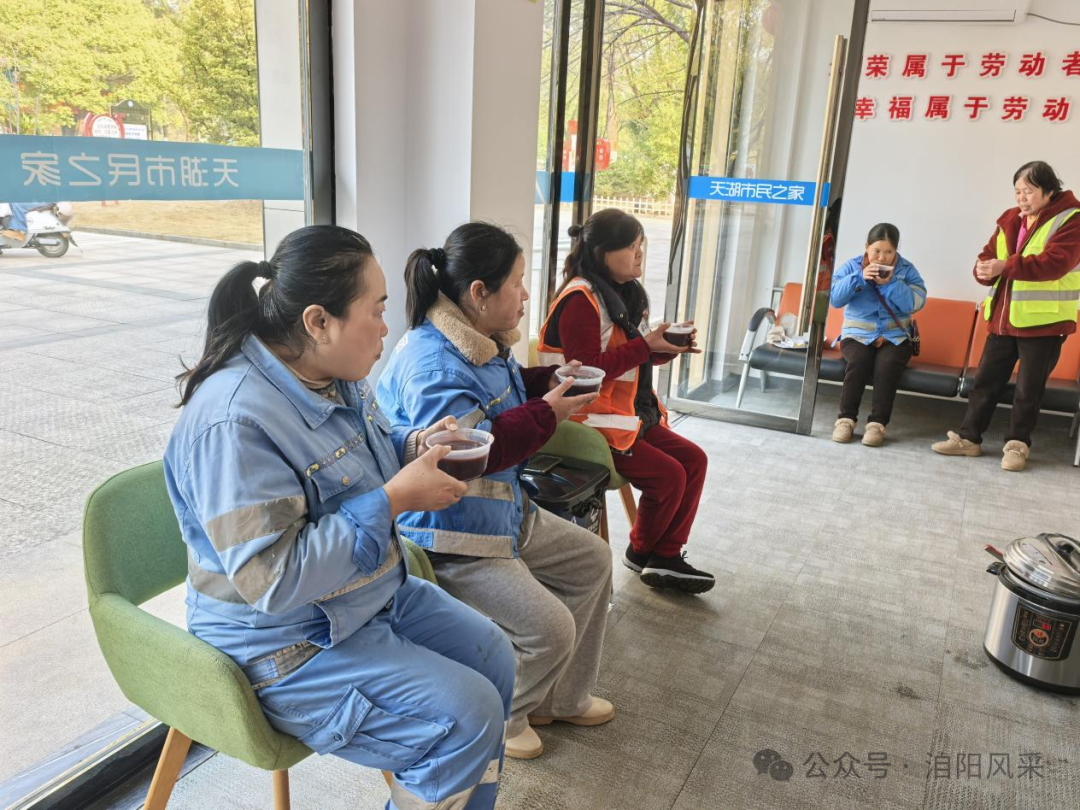 离开党员家中后,社区工作人员和居民们又来到了街头巷尾,将腊八粥送到了正在辛勤工作的环卫工人手中。环卫工人们是城市的美容师,他们每天天不亮就出门,无论严寒酷暑,都坚守在自己的岗位上,为城市的整洁和美丽付出了辛勤的汗水。