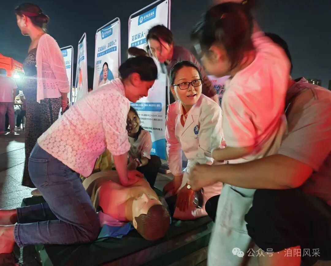 现场医务人员详细讲解了什么是“心肺复苏”急救法,发生紧急情况时如何处理,男士与女士在急救手法上的区别等知识,并通过现场示范手把手教授大家心肺复苏急救方法。