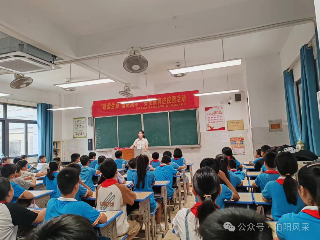 活动中,洎阳司法所所长、实验学校法治副校长胡灵喜首先通过PPT讲解、视频播放等形式,向学生们详细阐述了溺水的危害性、常见原因及预防措施。并结合真实案例,以案说法,让学生们深刻认识到溺水事故的严重后果,从而树立起“珍爱生命,远离危险水域”的强烈意识。