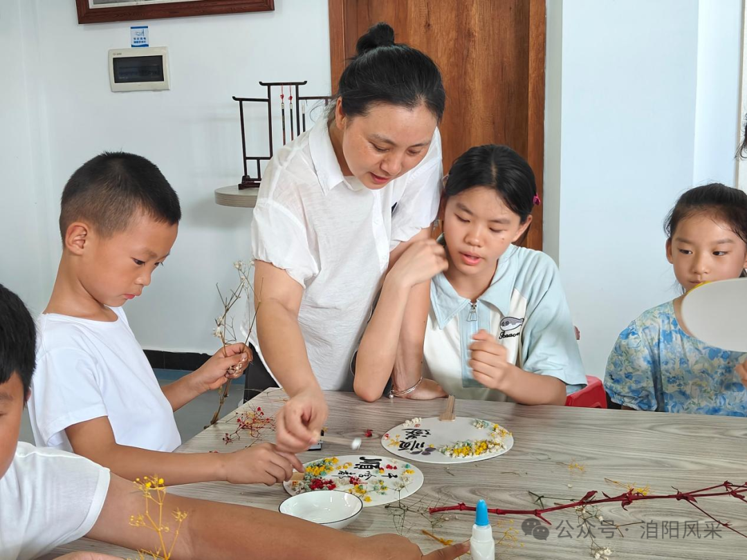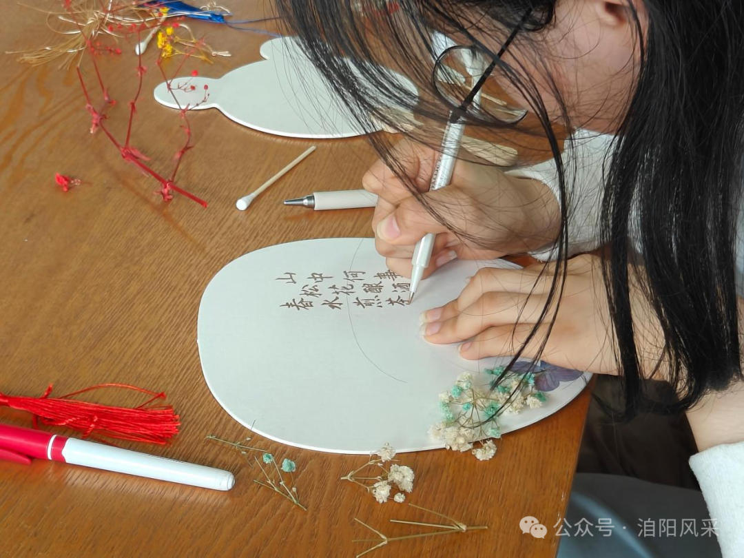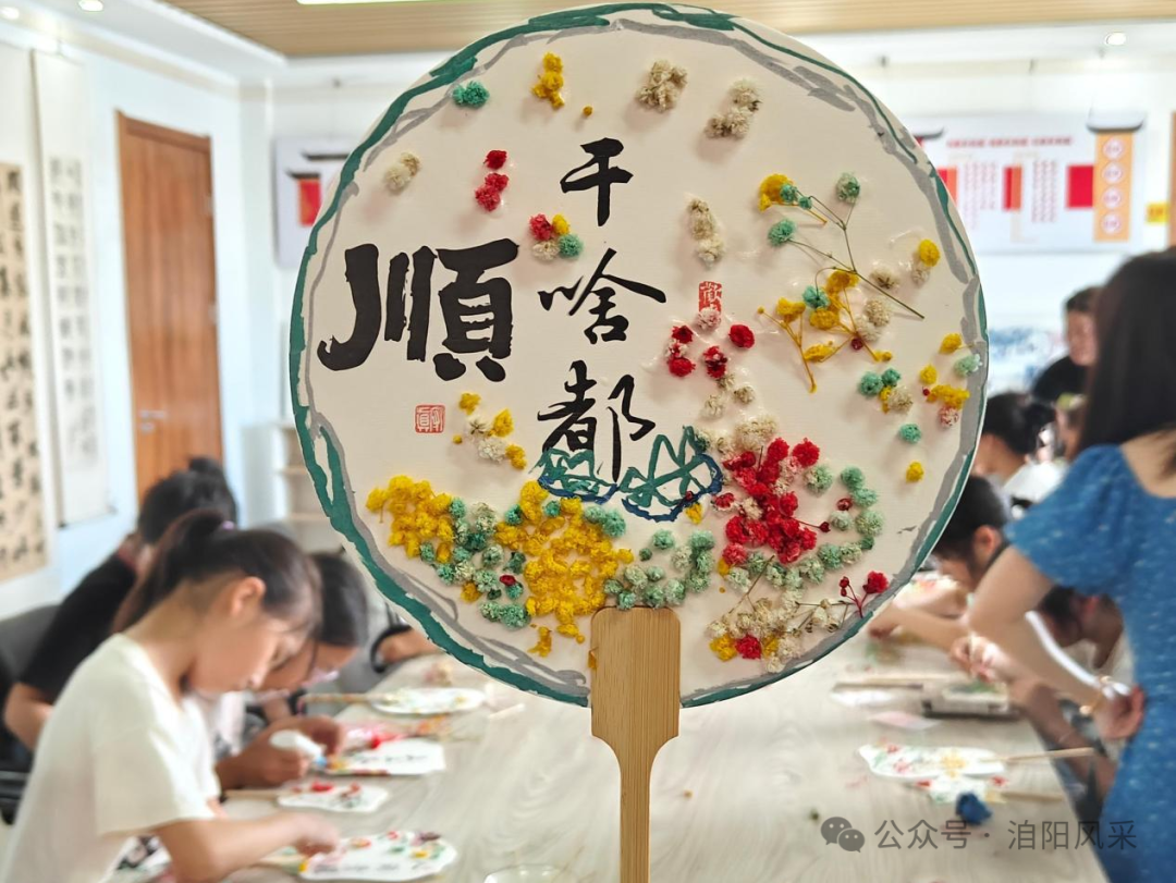 活动现场,五颜六色的画笔、风格各异的扇子以及各式各样的干花材料整齐摆放,小朋友们迫不及待地围坐在一起,眼神中满是期待。创作过程中,小朋友们充分发挥自己的创意——有的小朋友拿起画笔,在洁白的扇面上绘出可爱的卡通形象;有的小朋友用稚嫩的笔触书写下词句,传递着对传统文化的热爱;还有的小朋友则精心挑选干花,在家长的指导下,小心翼翼地将其粘贴在扇面上,组成精美的图案,仿佛将整个夏天的芬芳都珍藏在了扇间。