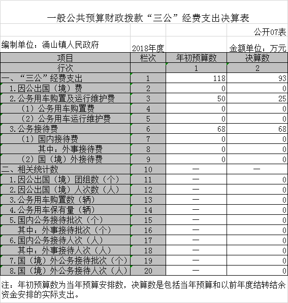涌山镇2018年“三公经费”决算表