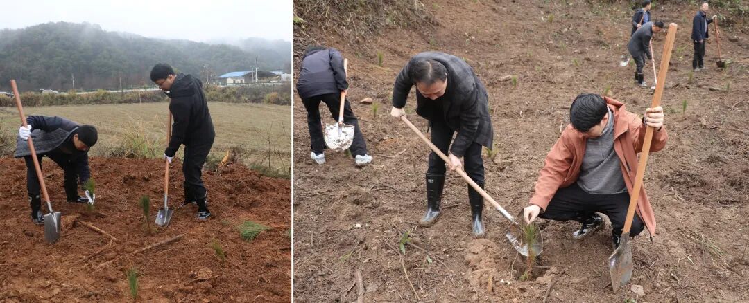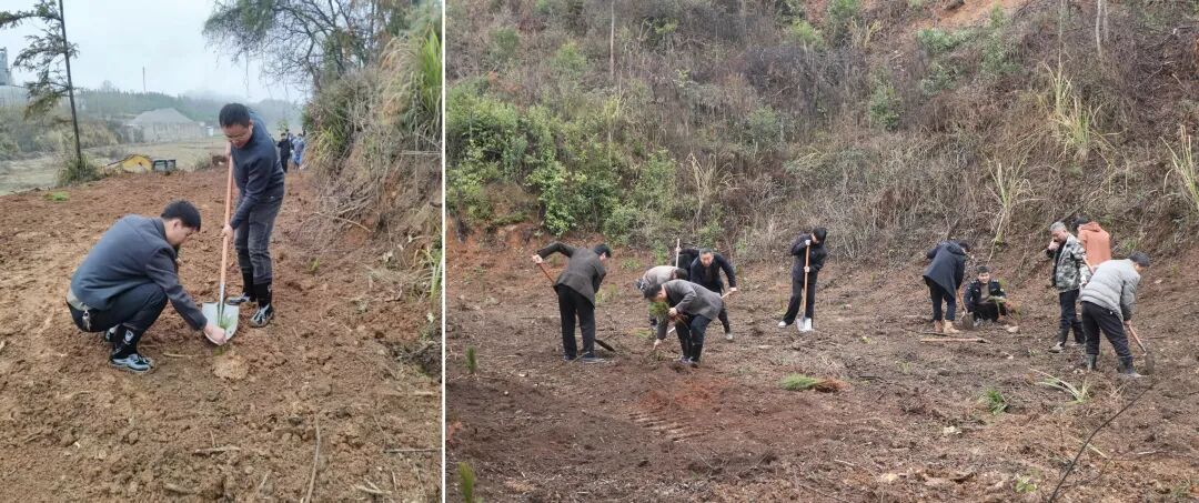 尽管天空飘着细雨、天色微凉,却丝毫没有影响大家的植树热情。大家分工协作,挥锹培土、扶苗踩实,一气呵成。不多时,一排排新苗迎风而立,为初春的涌山增添了盎然生机。