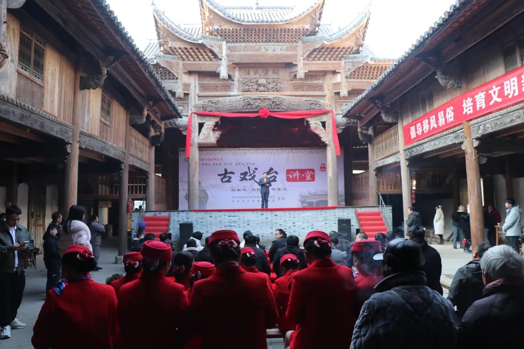 为深入学习贯彻景德镇市委十二届七次全会精神,聚焦文化启程,深化文明建设,引导广大群众自觉抵制陈规陋习,营造婚事新办、节俭养德、文明理事德社会风尚,1 月19日,由市新时代文明实践中心、市委宣传部主办的“古戏台讲堂”暨“时代新风进万家”移风易俗文艺巡演活动走进涌山镇东岗村。