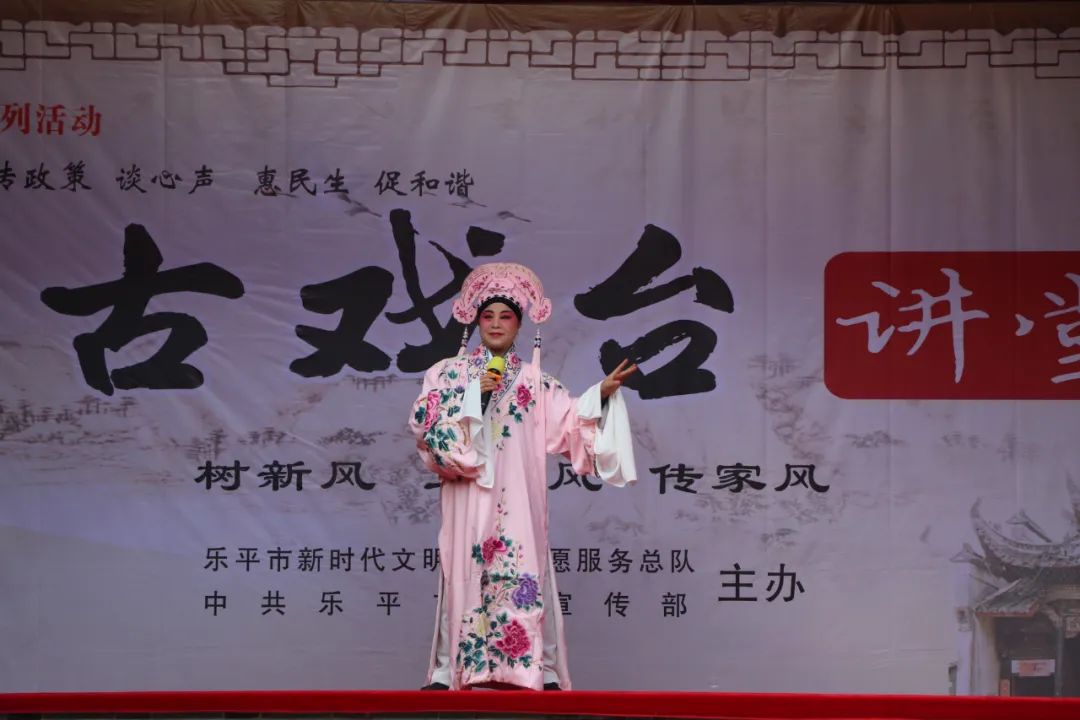 活动现场,10个节目,形式多样,轮番上演,其中包括舞蹈、快板、赣剧、三句半等。整场巡演在《腰鼓队舞》中拉开帷幕。紧接着音乐快板《移风易俗新风尚》、赣剧《梁祝》、街舞《华夏》等节目轮番上演。极具乐平特色的节目——赣剧《八姐游春》选段、三句半《利国利民惠子孙》吸引了许多村民的眼球。高亢的唱腔、美丽的服饰赢得阵阵掌声。在文艺表演的间隙,活动还穿插了政治理论知识抢答环节。村民们积极参与,踊跃回答问题,进一步加深了对相关政策和精神的理解。