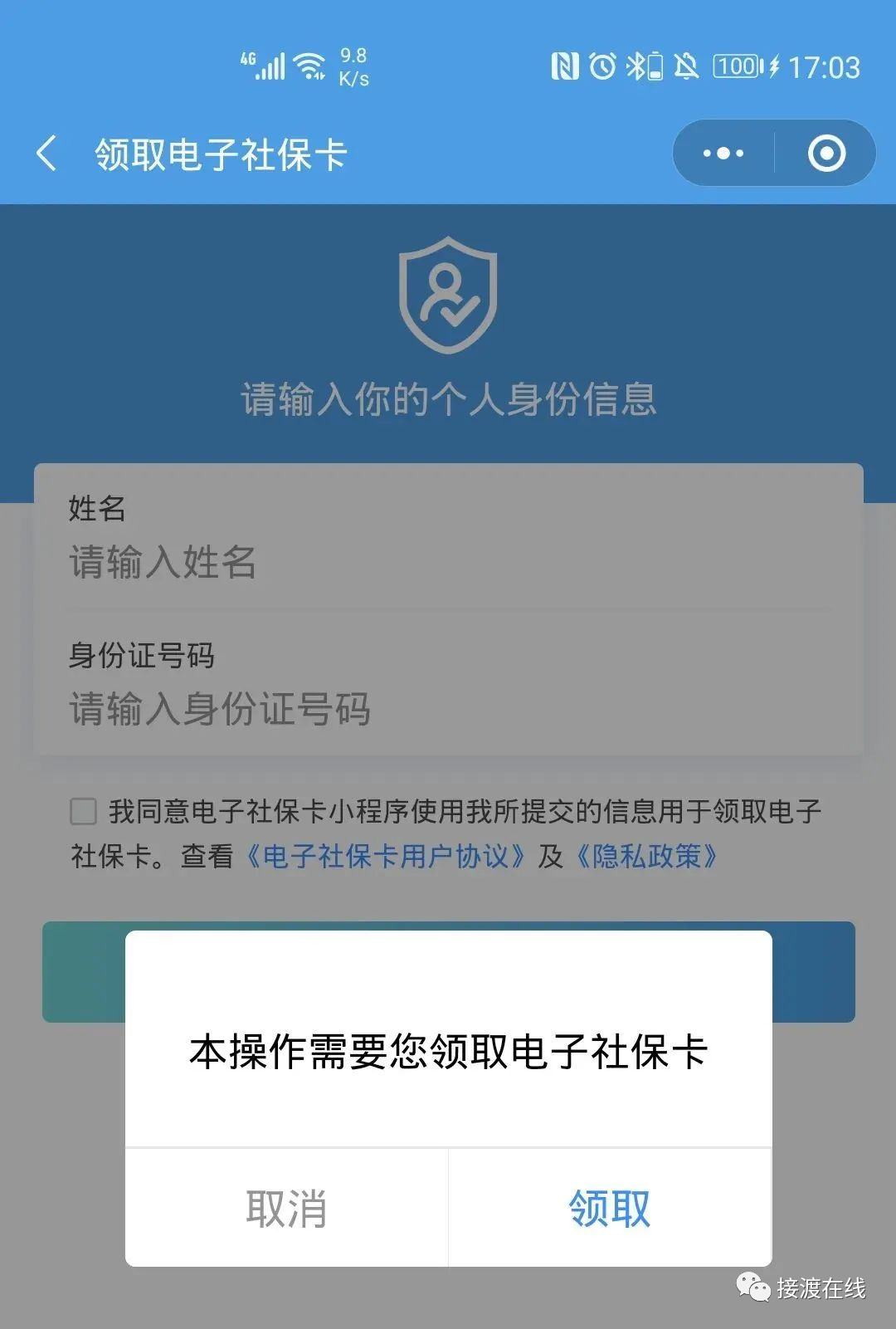 就能领取你的电子社保卡↓