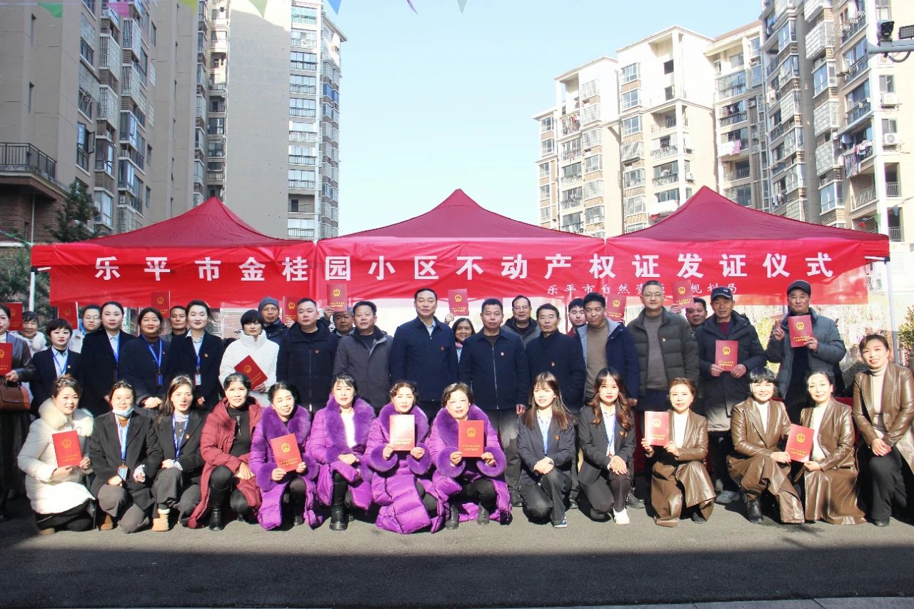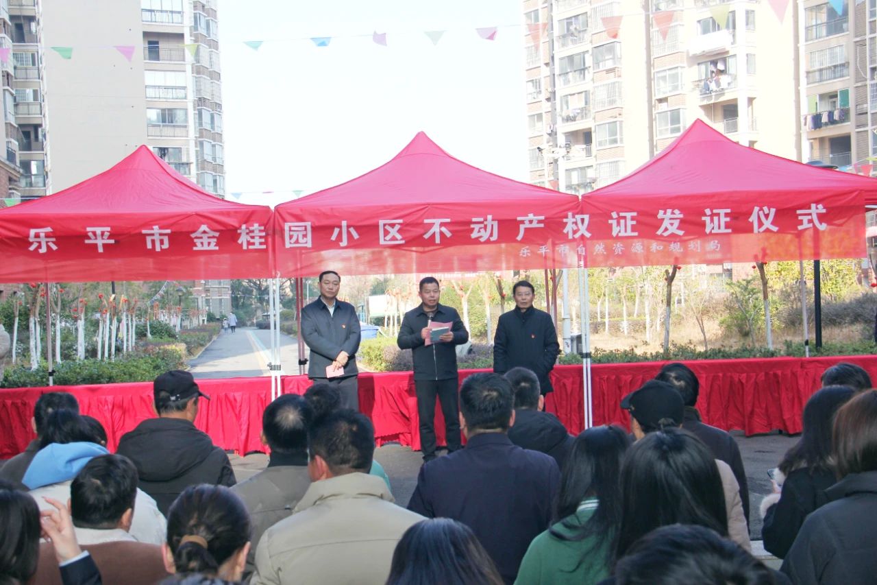 祥龙辞旧去,金蛇迎春来。1月27日上午,乐平市自然资源和规划局在金桂园小区举行不动产权登记证书发放仪式,局党组书记、局长王光真主持仪式并讲话,局领导徐志华、江国金,机关相关部门、第三党支部全体党员,金桂园小区业主代表参加仪式。