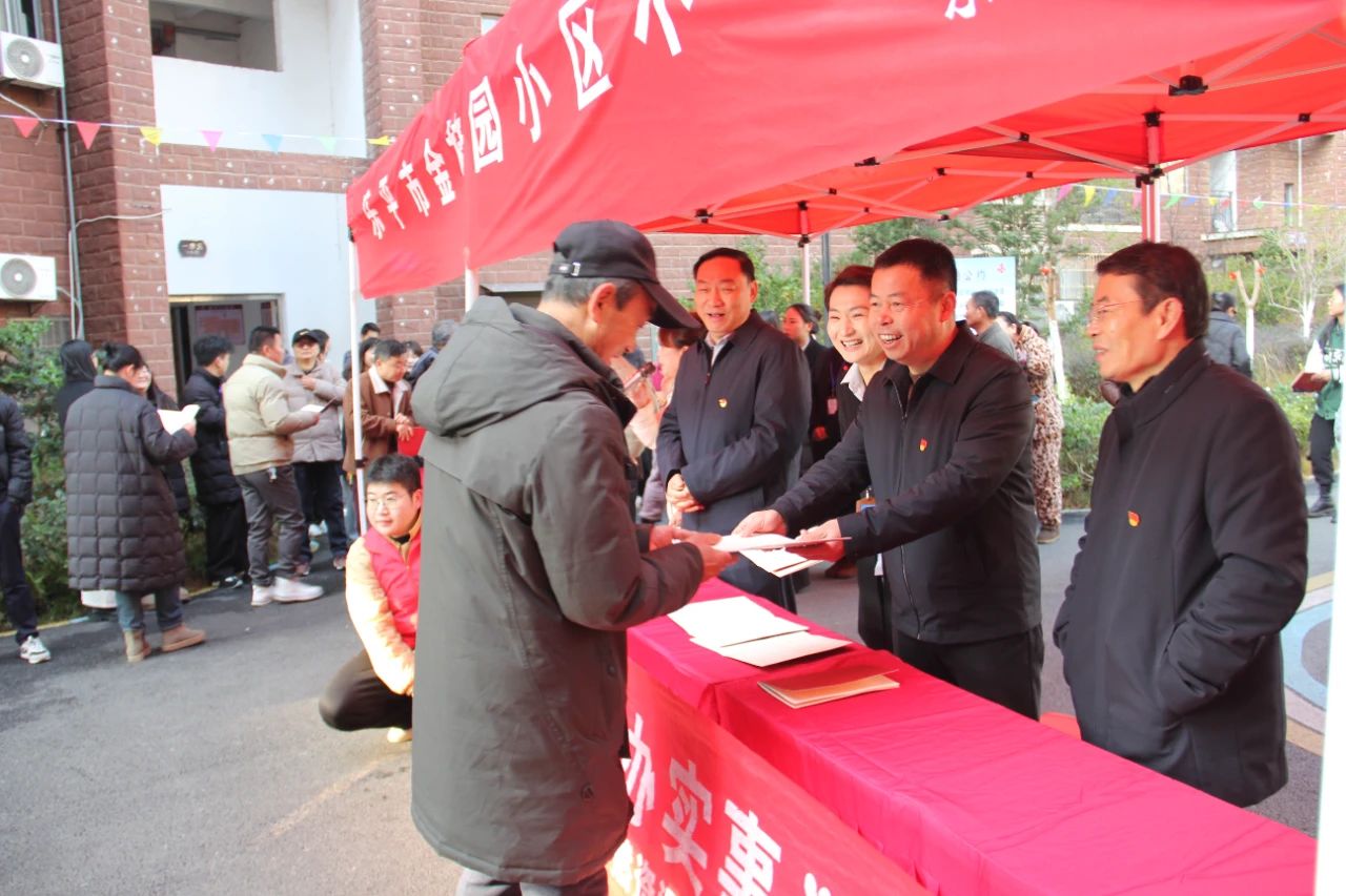 王光真指出,明天就是除夕之夜了,在这万家灯火、阖家团圆的美好时刻,在龙年最后1工作日放金桂园小区举行“不动产权登记证发证仪式”具有十分重要的意义,目的就是让大家过个开心年、顺心年、安心年,用心用情做好贴心服务、送证上门,将不动产权证书送到小区业主代表手中,让全体业主“住有所居、居有所安”,使大家获得感、幸福感、安全感更加充实、更有保障、更可持续。