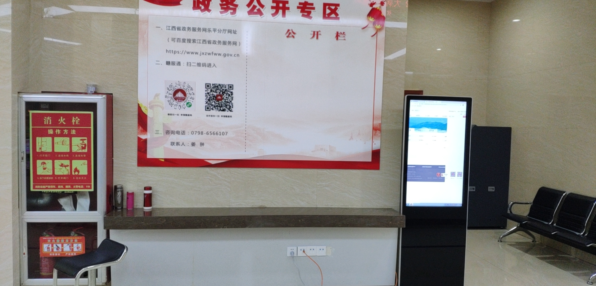 自助服务区为群众提供自助业务办理,资料架为群众提供相关纸质文件、政策、书籍的阅读