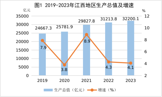 2023年是全面贯彻落实党的二十大精神的开局之年,是实施“十四五”规划承上启下的重要一年。面对错综复杂的国内外形势和诸多不稳定不确定因素,全省上下坚持以习近平新时代中国特色社会主义思想为指导,深入贯彻落实党的二十大和习近平总书记考察江西重要讲话精神,坚持稳中求进工作总基调,完整、准确、全面贯彻新发展理念,统筹做好稳增长、促改革、惠民生、保稳定、防风险等各项工作,推动全省经济回升向好,质量效益稳步提升,高质量发展取得新成效,全面建设社会主义现代化江西迈出坚实步伐。
