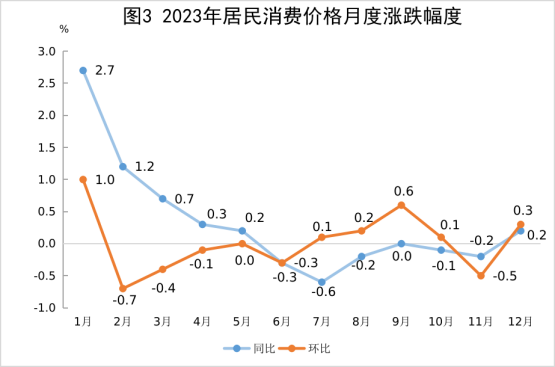 全年居民消费价格比上年上涨0.3%。工业生产者出厂价格下降3.4%。工业生产者购进价格下降4.2%。农产品生产者价格下降4.7%。