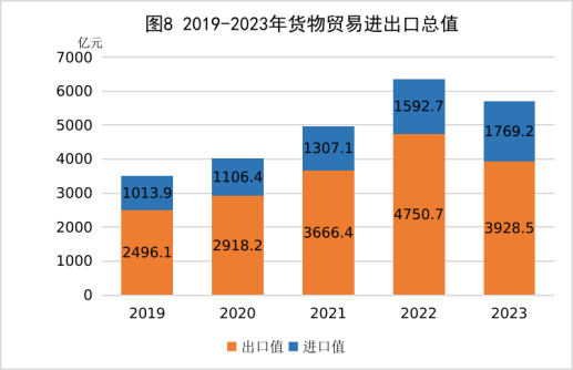 表8 2023年对主要国家(地区)出口值及其增长速度