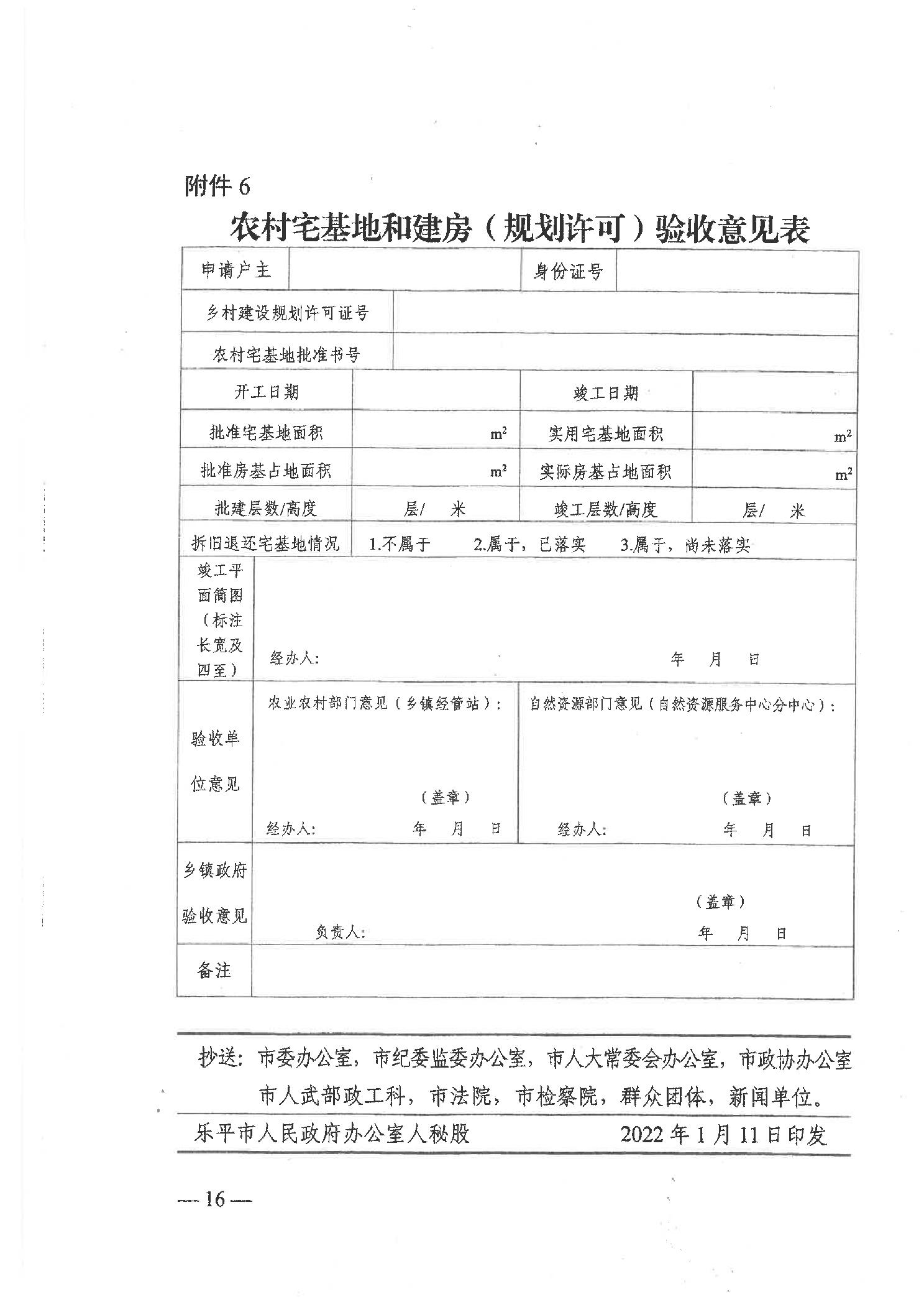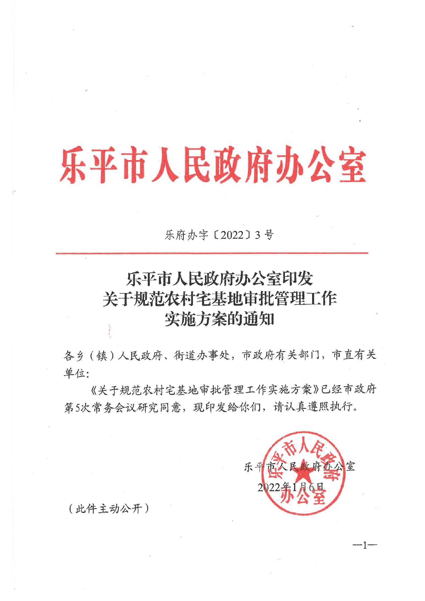 乐平市人民政府办公室印发关于规范农村宅基地审批管理工作实施方案的通知